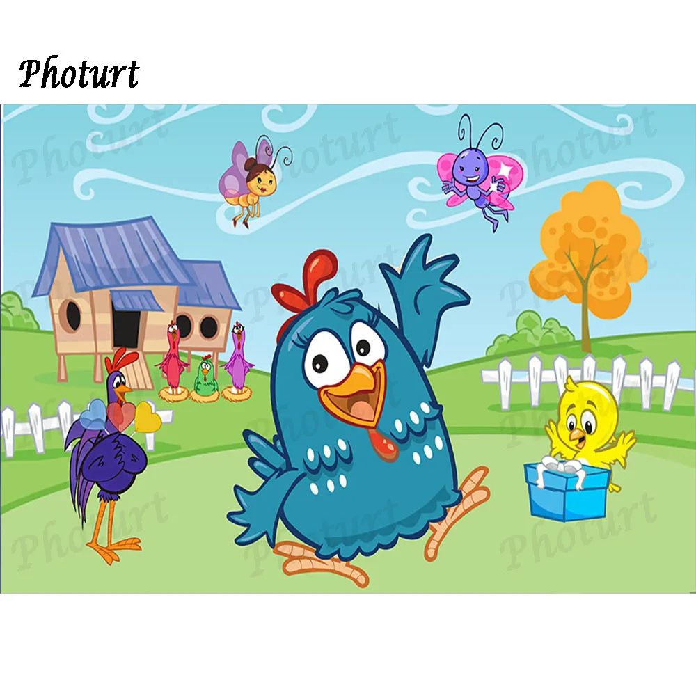 Фотофон с изображением фермы курицы фон для детского дня рождения зеленый розовый полиэстер винил фотография баннер декоративный реквизит