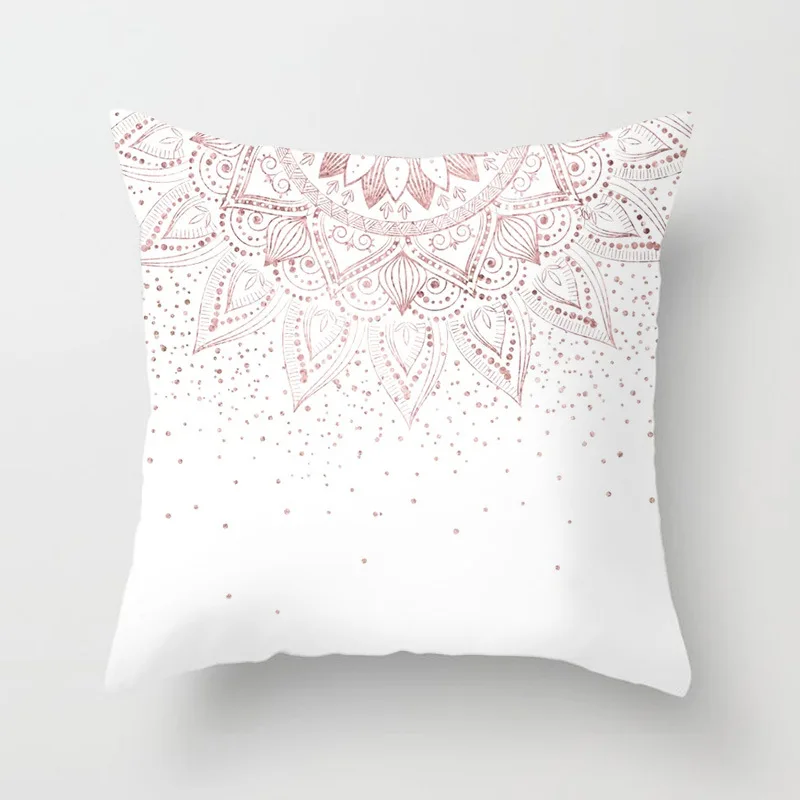 Подушка для дивана без сердечника, с геометрическим рисунком растений, букв, цветов, розовая Наволочка на подголовник, украшение для вечеринки, подарок для детей