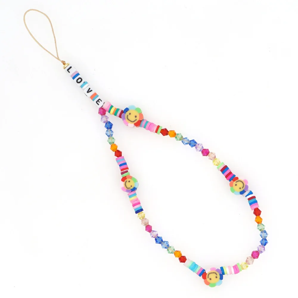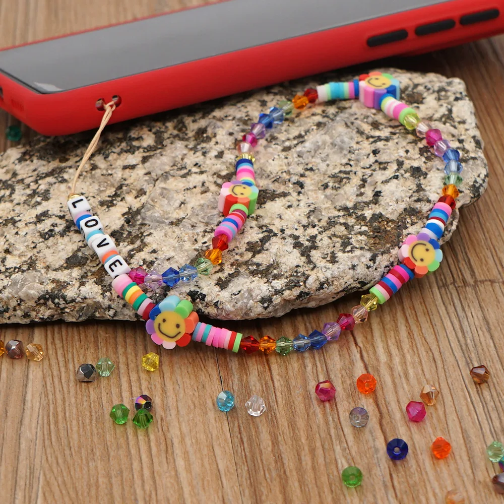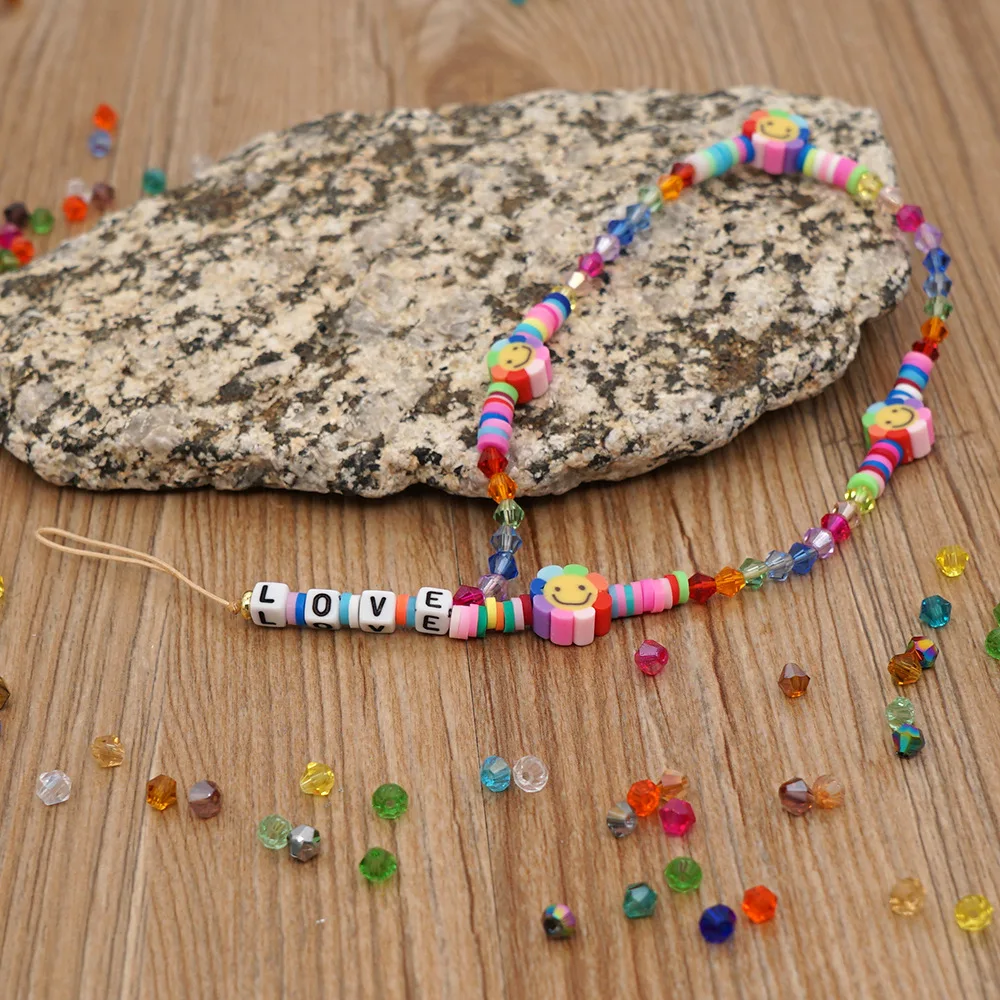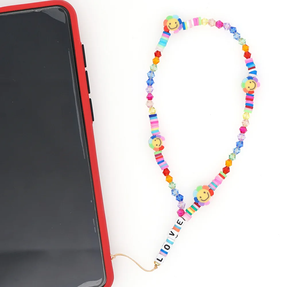 Ремешок для телефона, цветной, мягкий, керамический, с надписью мобильный телефон, цепочка со смайликом, ремешок для сотового телефона чехол для телефона, подвесной шнур, украшения в стиле бохо