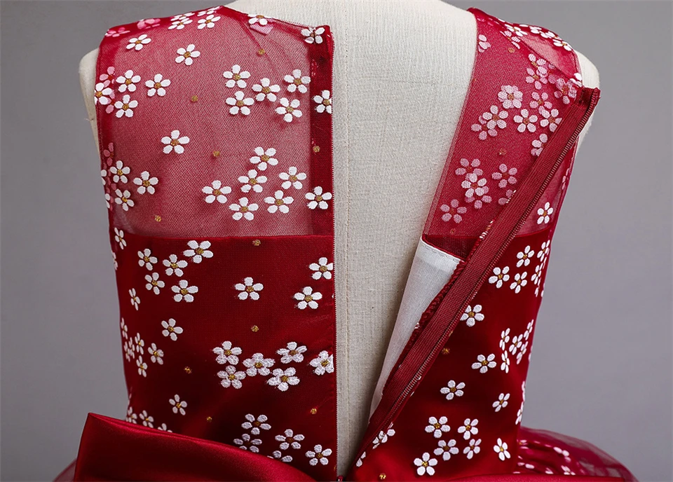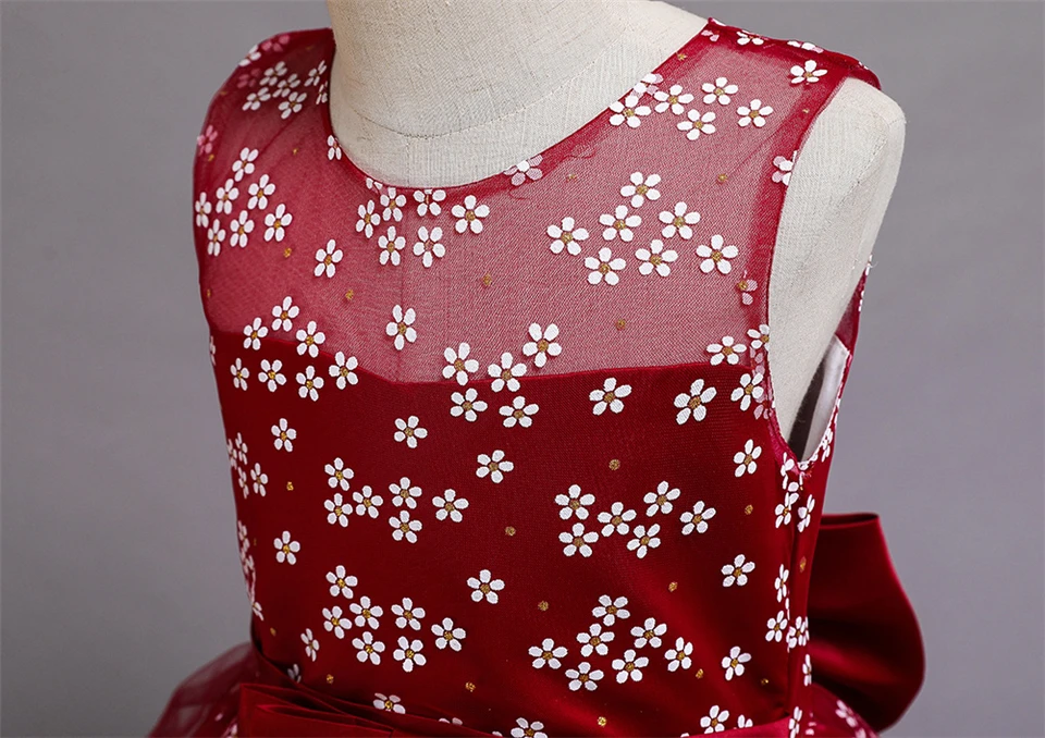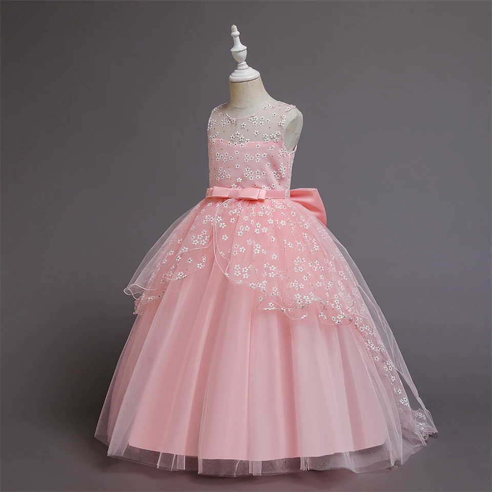 Детское длинное бальное платье с бантом, с цветочным принтом