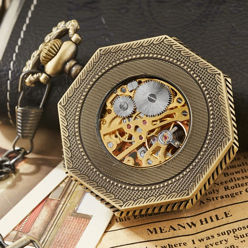 Антикварные Механические карманные часы для коллекции, полностью бронзовые, с римскими цифрами, скелетоны, циферблат, часы с подарочной коробкой, Прямая поставка