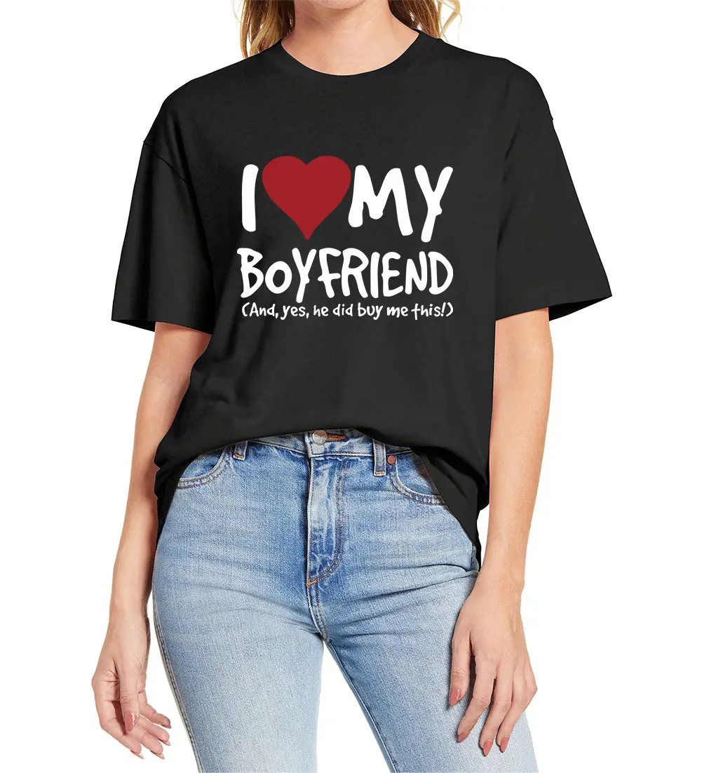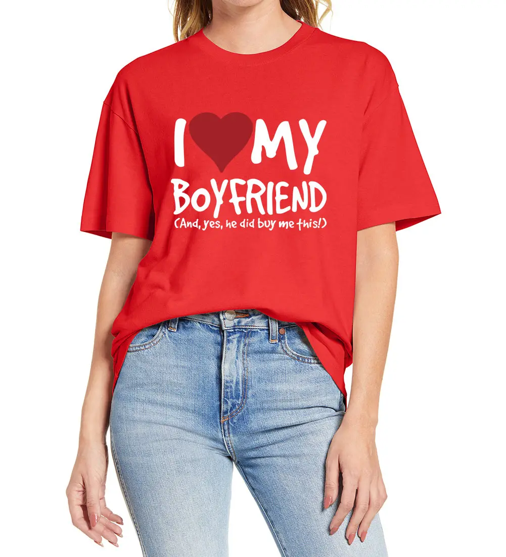 Подарок для любимого Забавный я люблю моего парня да он купил меня Женская Новинка 100% хлопковая Футболка Мягкая футболка юмор подарок для девушки на день рождения
