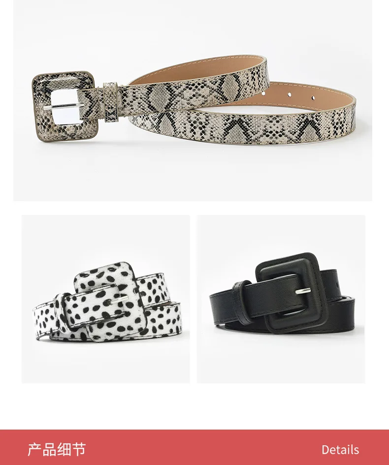 Новинка 2021, Леопардовый змеиный принт, украшение с пряжкой, ретро женский ремень для джинсов, европейский и американский ремень для платья