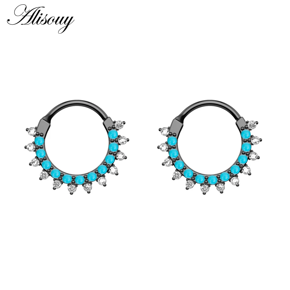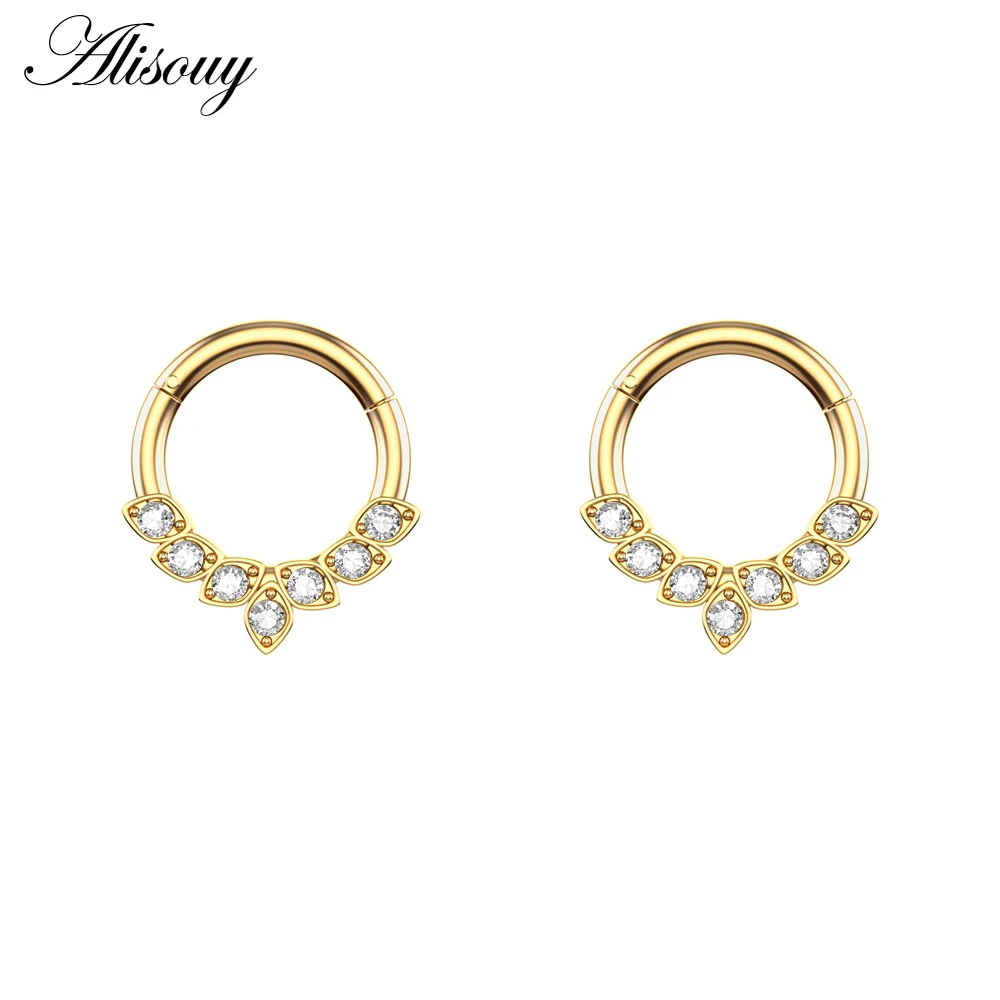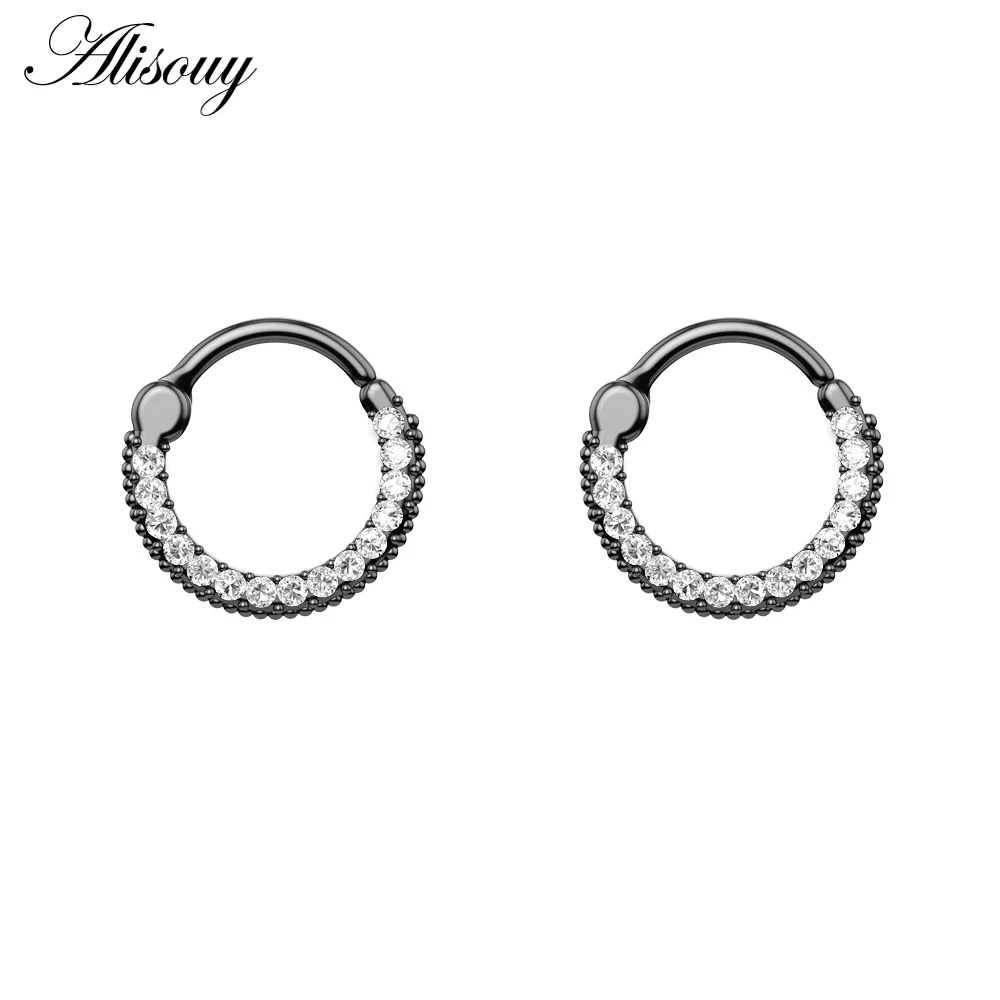 Alisouy 1 шт. 16 г нержавеющая сталь Кристалл CZ откидная перегородка Кликер кольцо для носа соска Daith Спиральные серьги пирсинг ювелирные изделия для тела