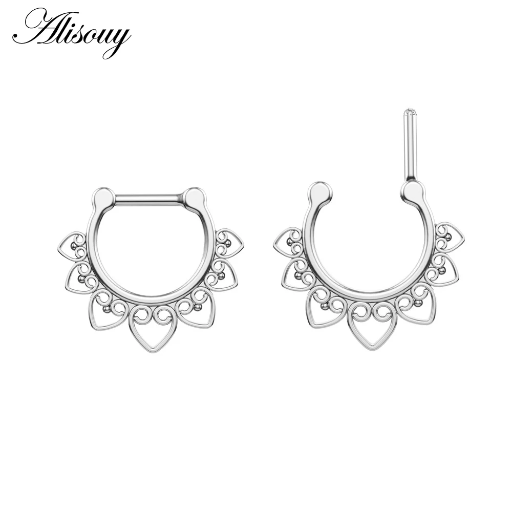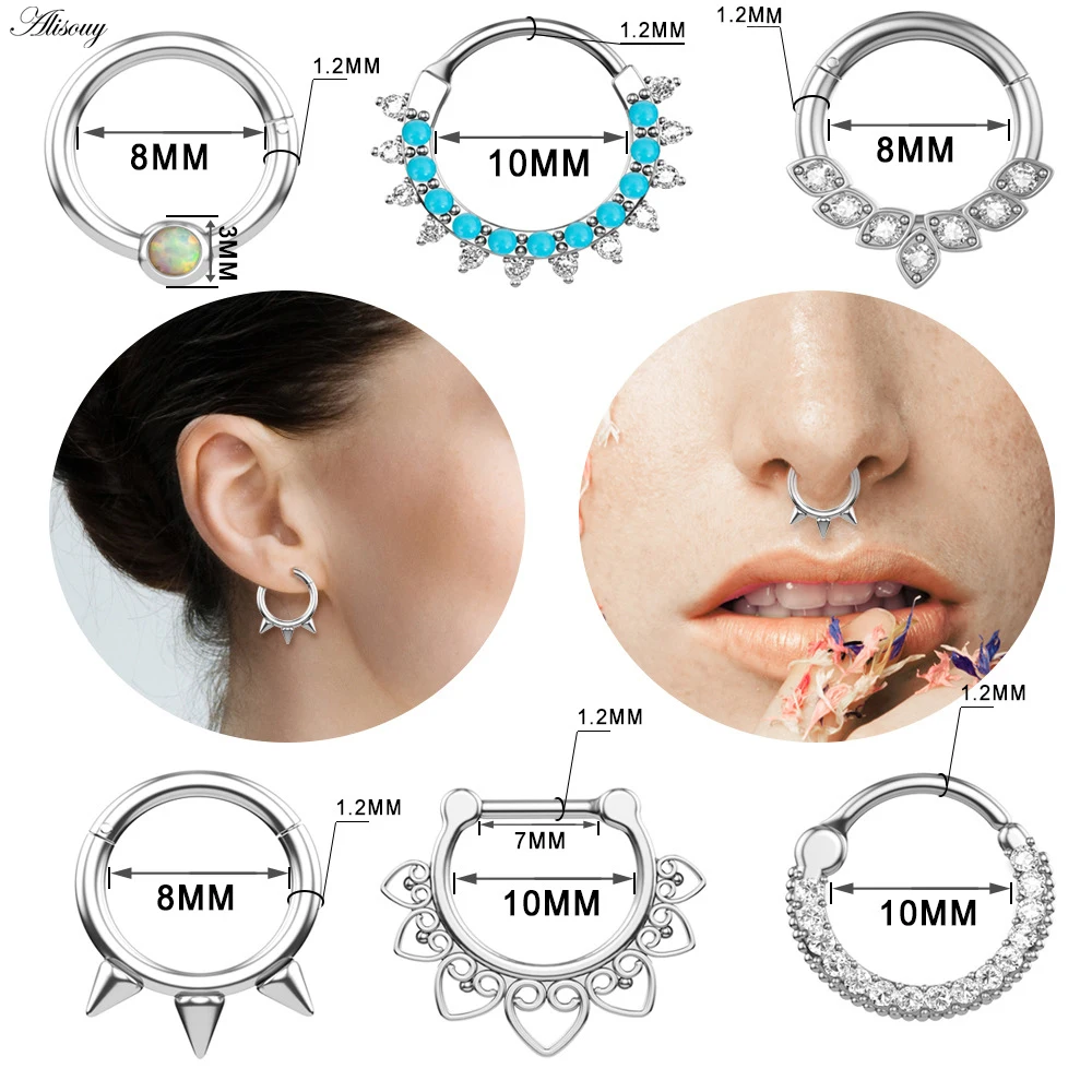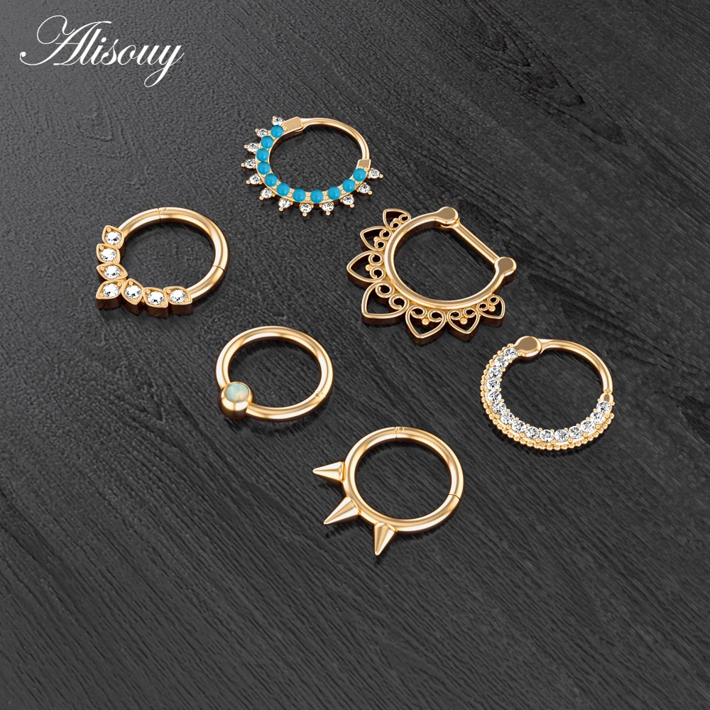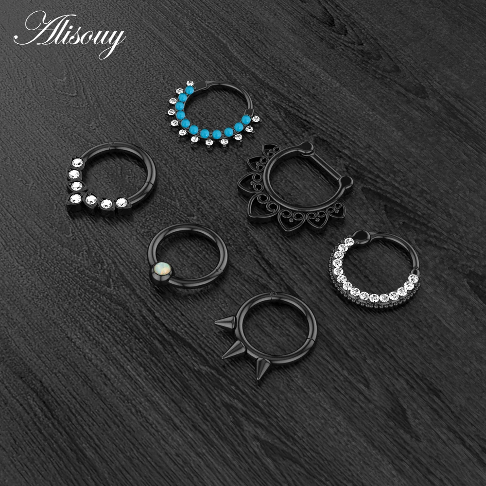 Alisouy 1 шт. 16 г нержавеющая сталь Кристалл CZ откидная перегородка Кликер кольцо для носа соска Daith Спиральные серьги пирсинг ювелирные изделия для тела