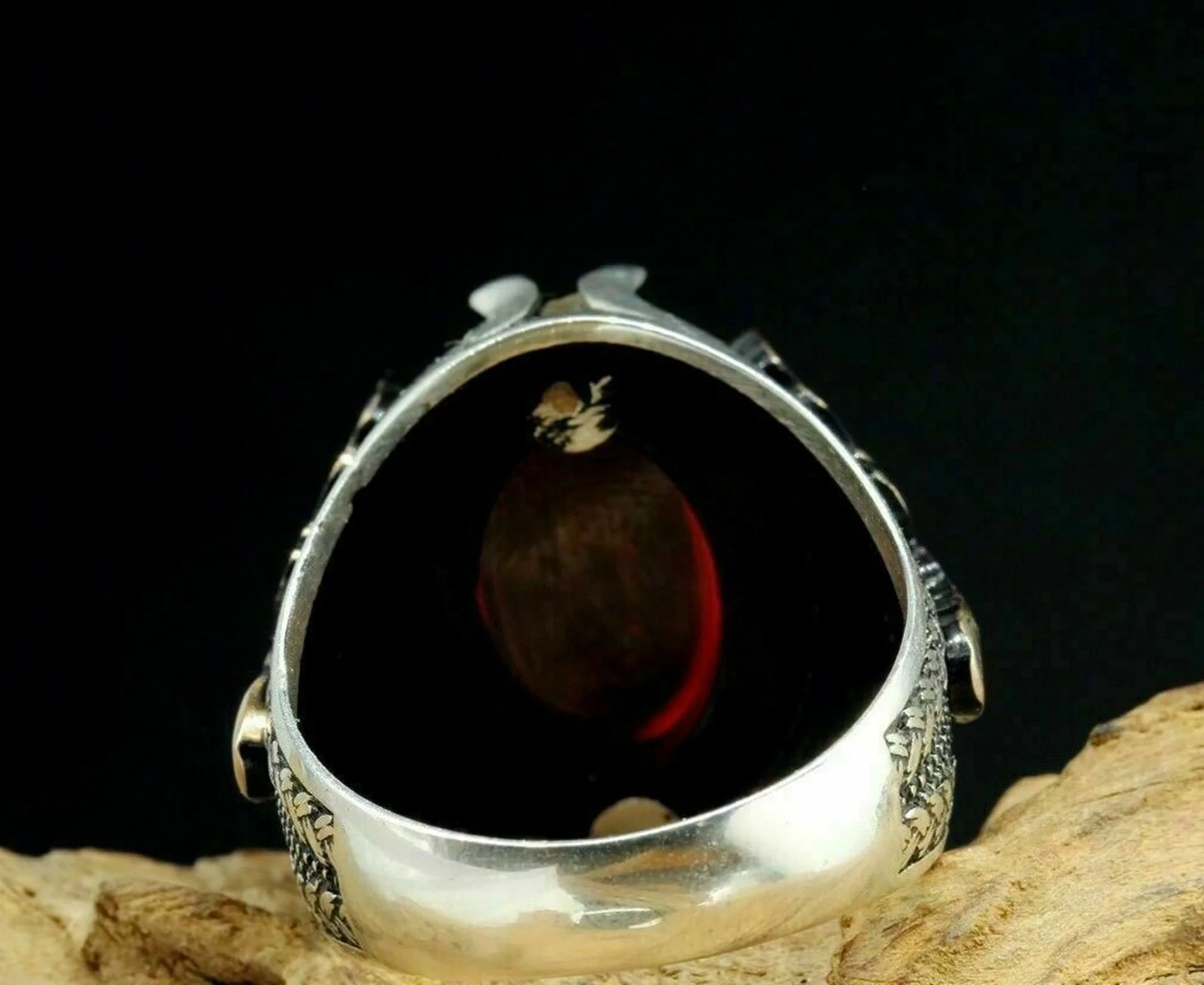 Серебряное мужское кольцо ручной работы в турецком стиле с рубином,...