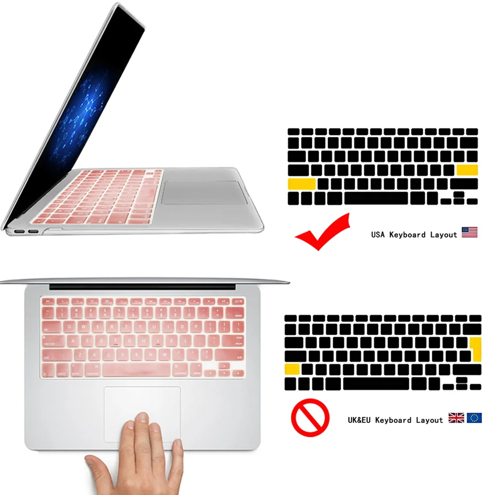 Жесткий защитный чехол для Apple Macbook Air 1113 дюймаPro 13151612 прорезиненный матовый чехол цвета розового золота + накладка для клавиатуры США