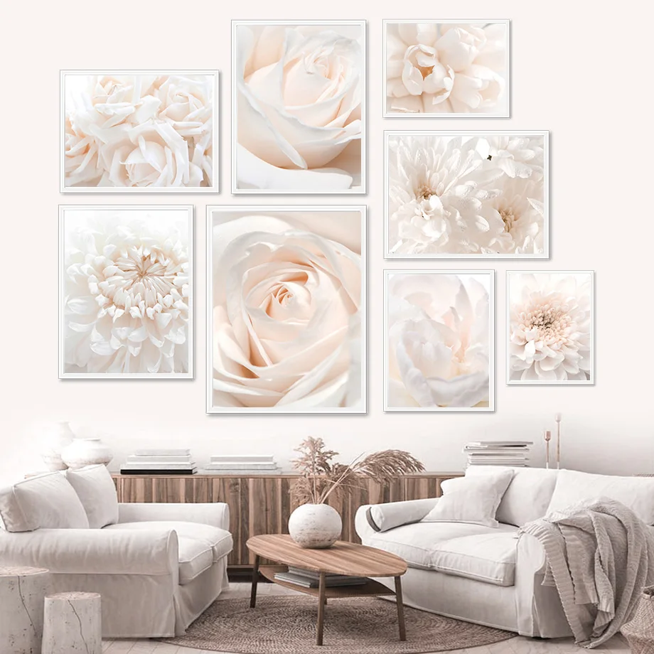 Минималистичная настенная Картина на холсте с изображением белых пи...