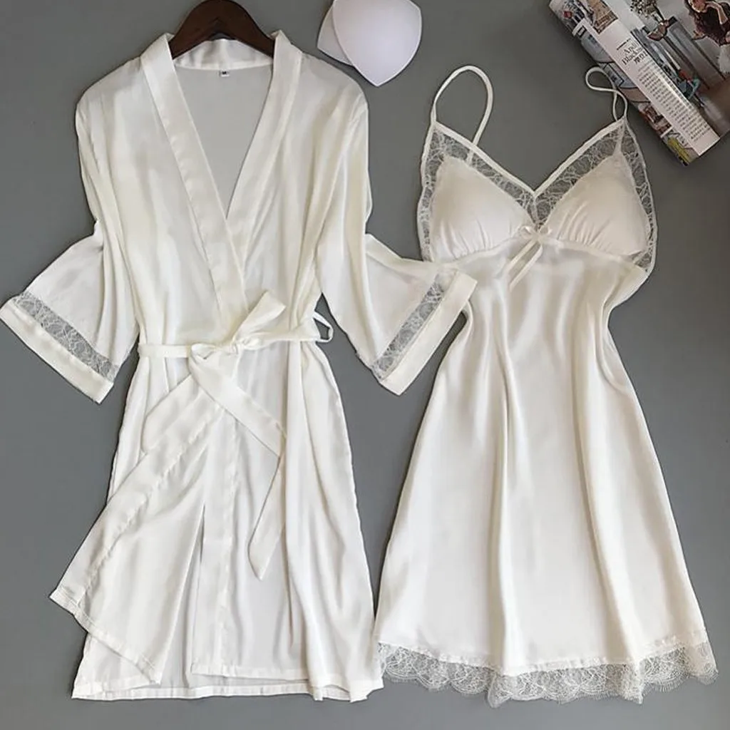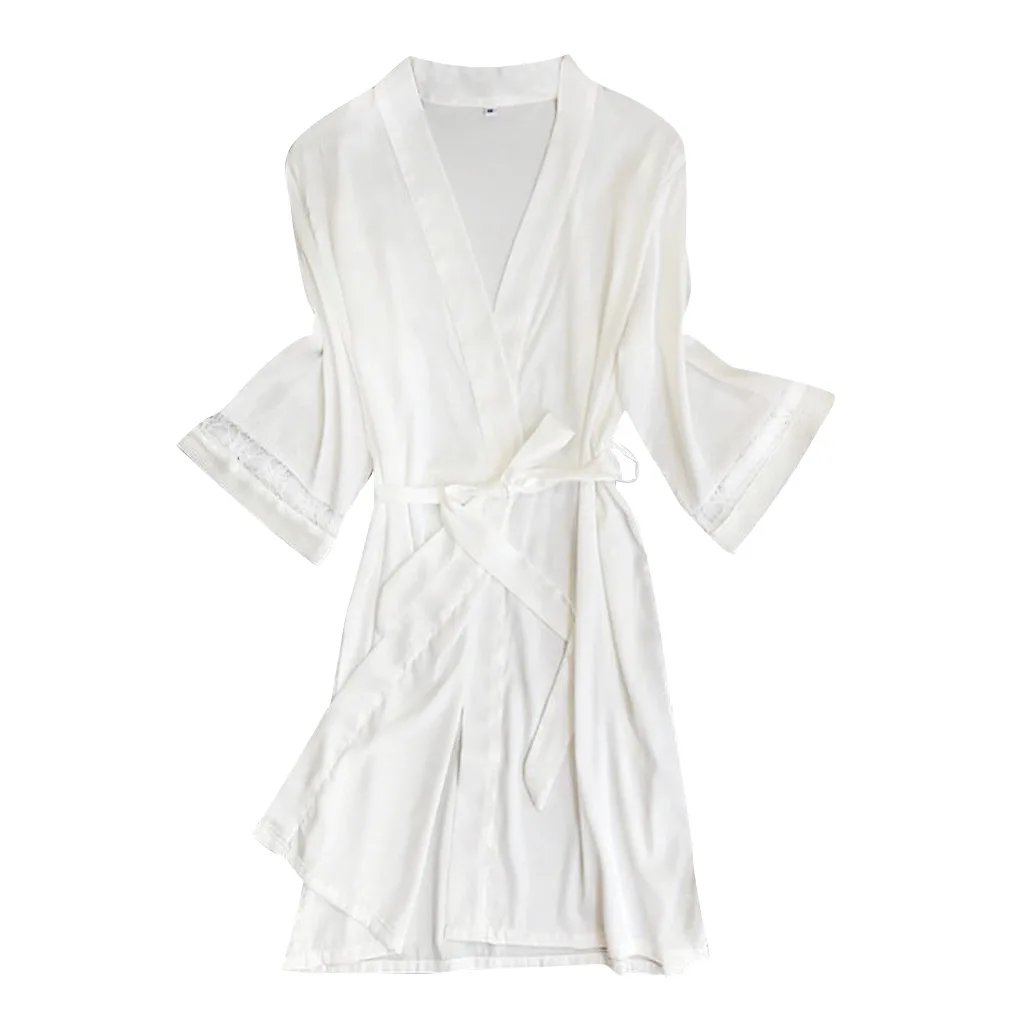 Женский Шелковый комплект из 2 предметов, кружевной пикантный Свадебный халат-кимоно для невесты и подружки невесты, ночная сорочка, Повседневная Ночная рубашка