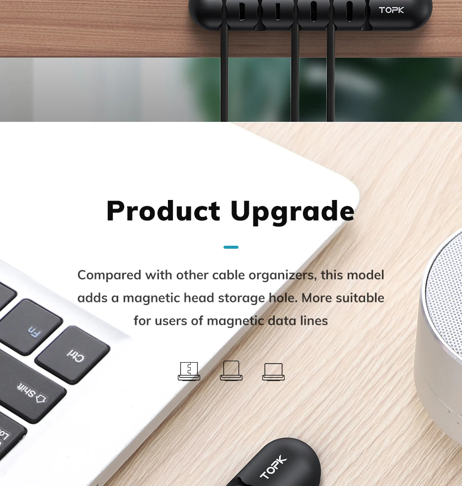 Держатель для кабеля TOPK L35, силиконовый, для наушников, мыши, наушников