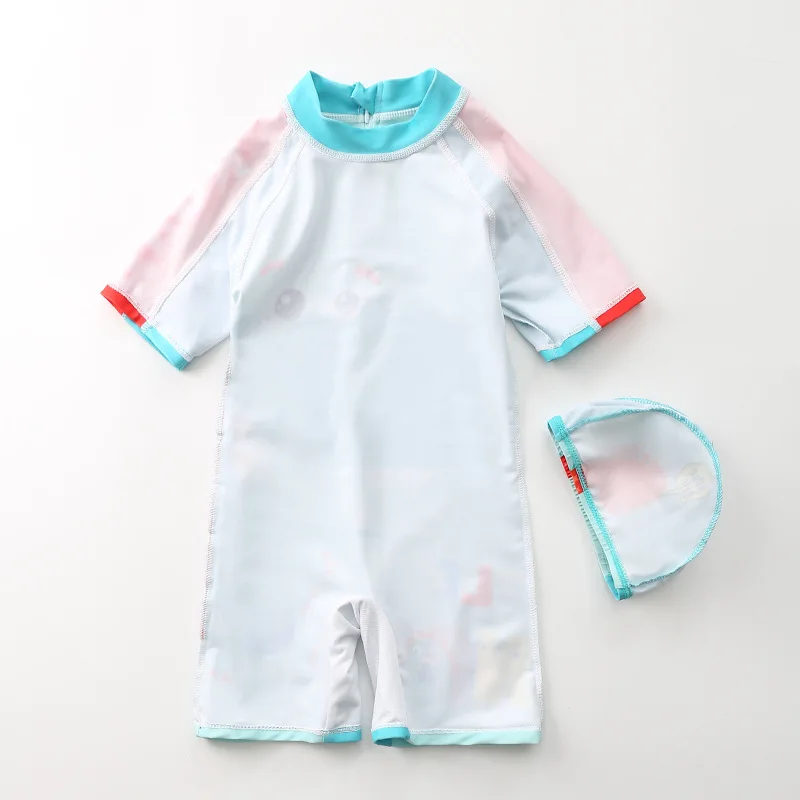Детский слитный купальник с шапкой, купальный костюм с УФ-защитой и...