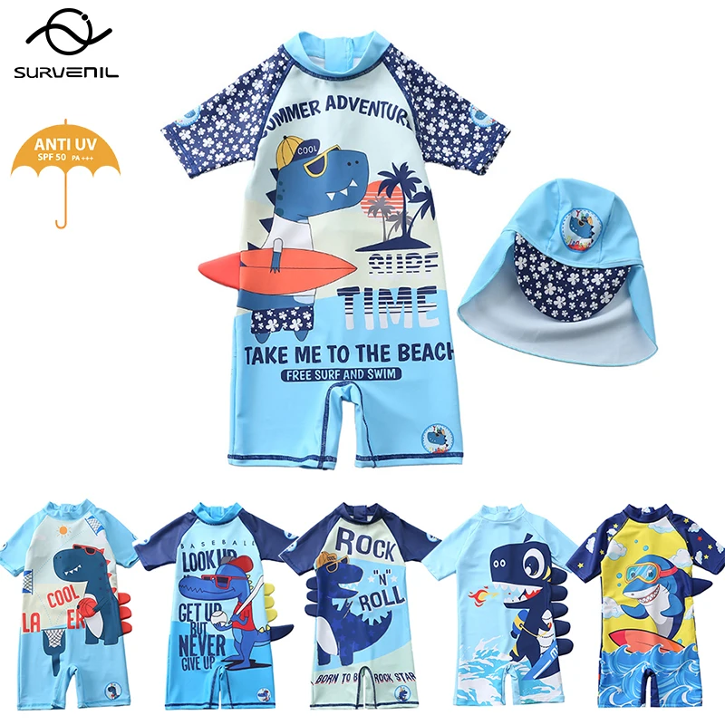 Детский слитный купальник для мальчиков, с защитой от ультрафиолетаСведения о товареС защитой от солнца UPF 50 + с принтом мультяшного динозавра этот набор Рашгард сохраняет его милым и защищенным в течение всего дня.Защита от солнца UPF 50 +Слитный костюм с кепкойЭкспортное стандартное качествоБыстросохнущийСтирка и уходРучная стирка водой до 10 ℃Стирать отдельно с другой одеждойБез замачивания, без мыла, без моющего средства, без выпечкиСухая линия
