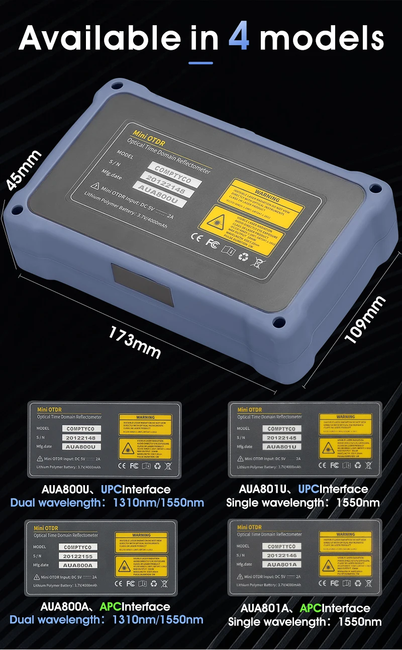 AUA800 900 Мини OTDR 1310Нм 2624 дБ волоконно-оптический рефлектоме...