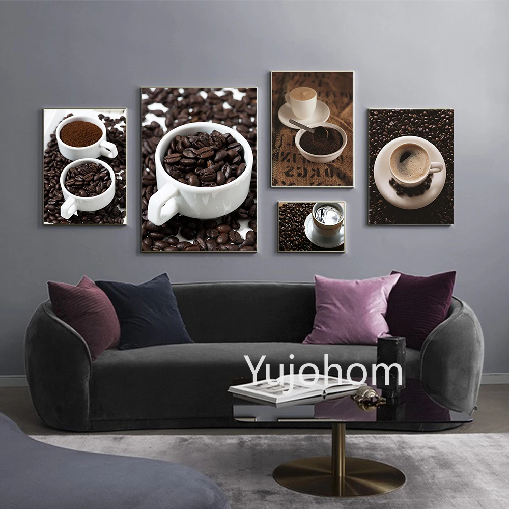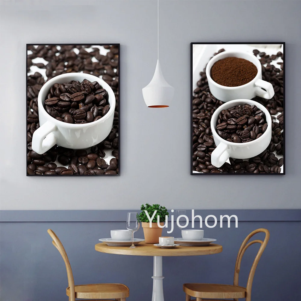 Белая керамическая кофейная чашка обои постер чашки с принтом с молотым кофе и кофе бобы Холст Картина гостиная домашний декор