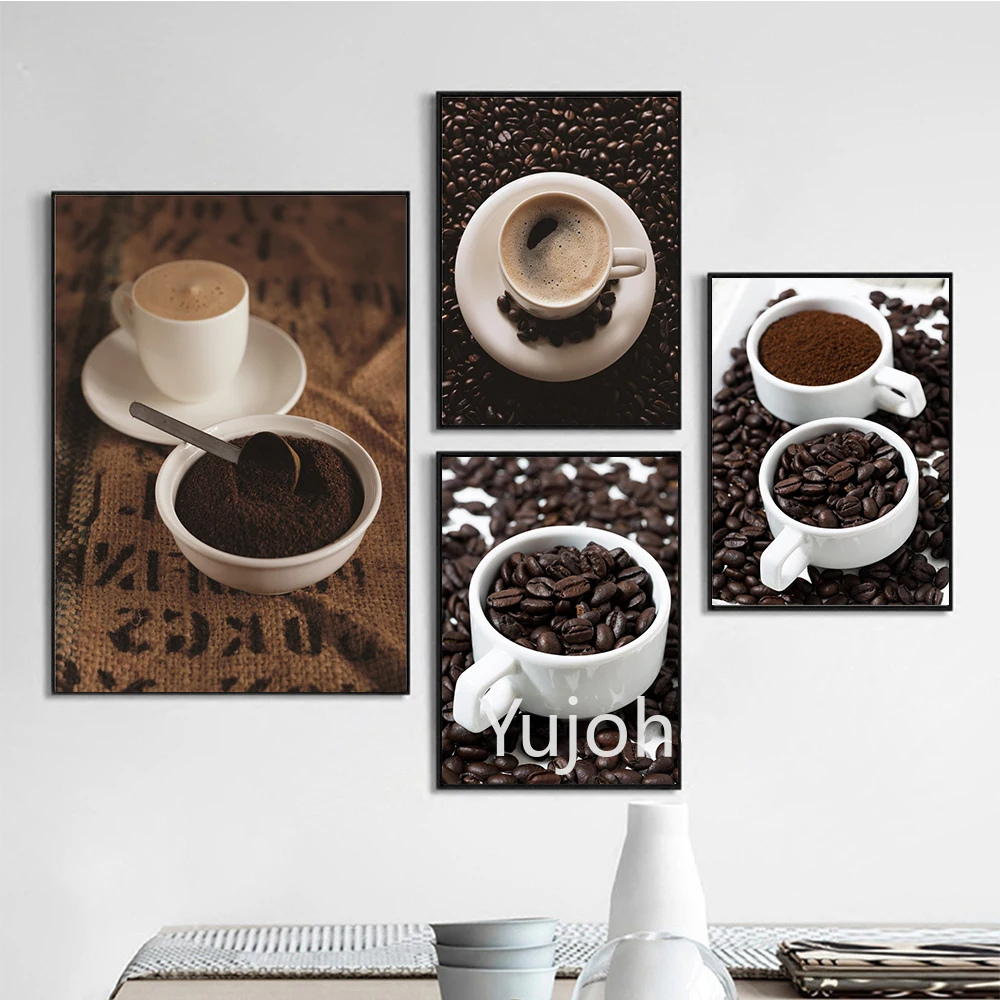 Белый Керамика Кофе чашка обои плакат чашки с принтом с Молотый кофе Кофе и Кофе бобы холст картины Гостиная домашний декор