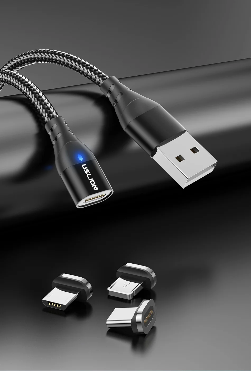 Магнитный кабель USLION usb-c, Micro USB, для iPhone 11, 12, Samsung, 3 А