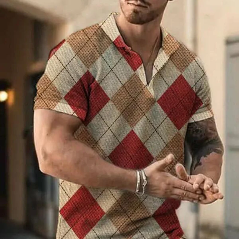 Мужская рубашка-поло, летняя, Лоскутная, с отложным воротником, на молнии, с коротким рукавом, в стиле Харадзюку, 2021