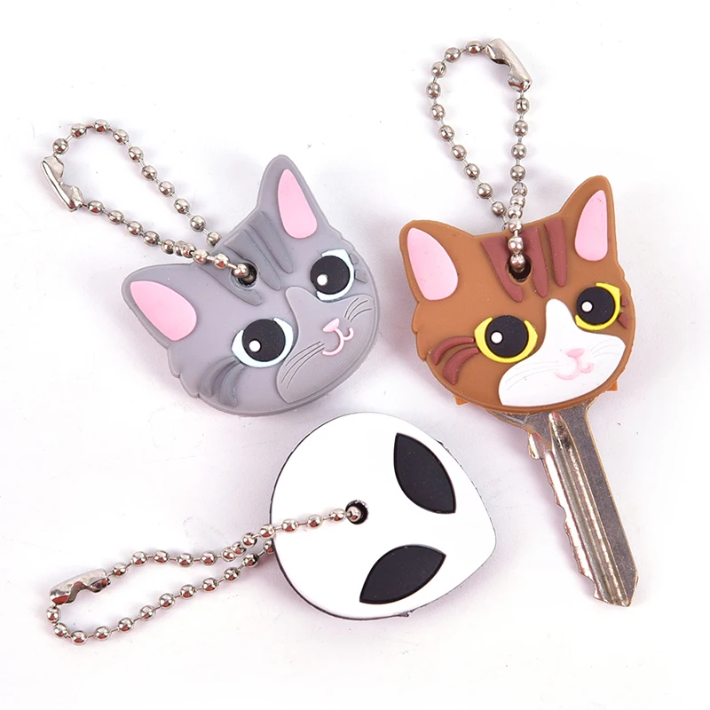 1 шт. Силиконовое кольцо для ключей Кепки головных уборов Брелок чехол в виде ракушки с рисунком собачки и котика Животные Форма прекрасный, ювелирное изделие, подарок
