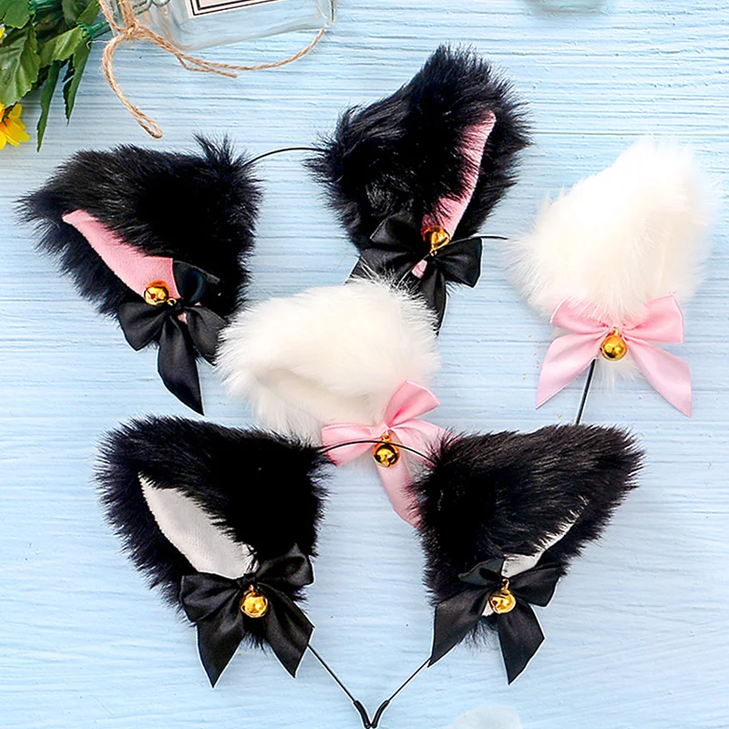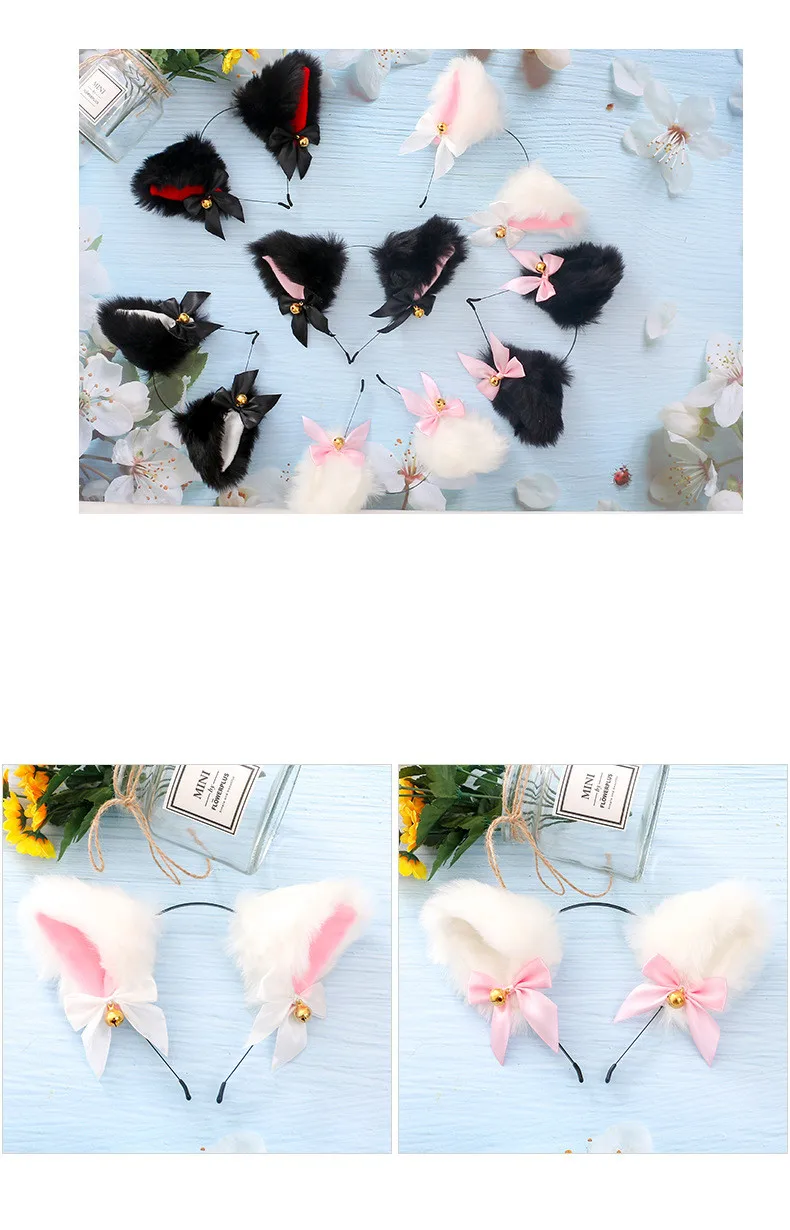 Новинка плюшевая повязка на голову для маскарада Хэллоуина с милыми лисьими кошачьими ушками для косплея Лолиты костюм для вечеринки галстук-бабочка с колокольчиком аксессуары для волос в стиле аниме