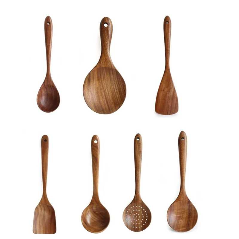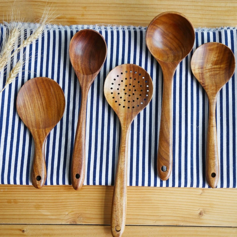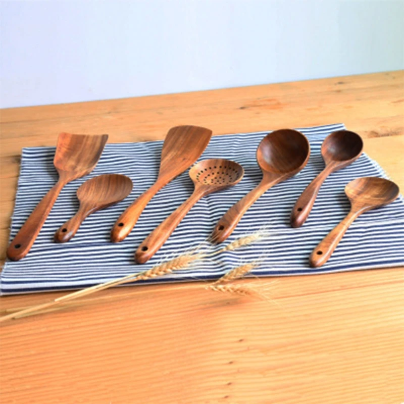 Шпатель из натурального дерева, ложка для риса и супа, дуршлаг, кухонная утварь, домашняя посуда ручной работы, столовая посуда, столовые приборы