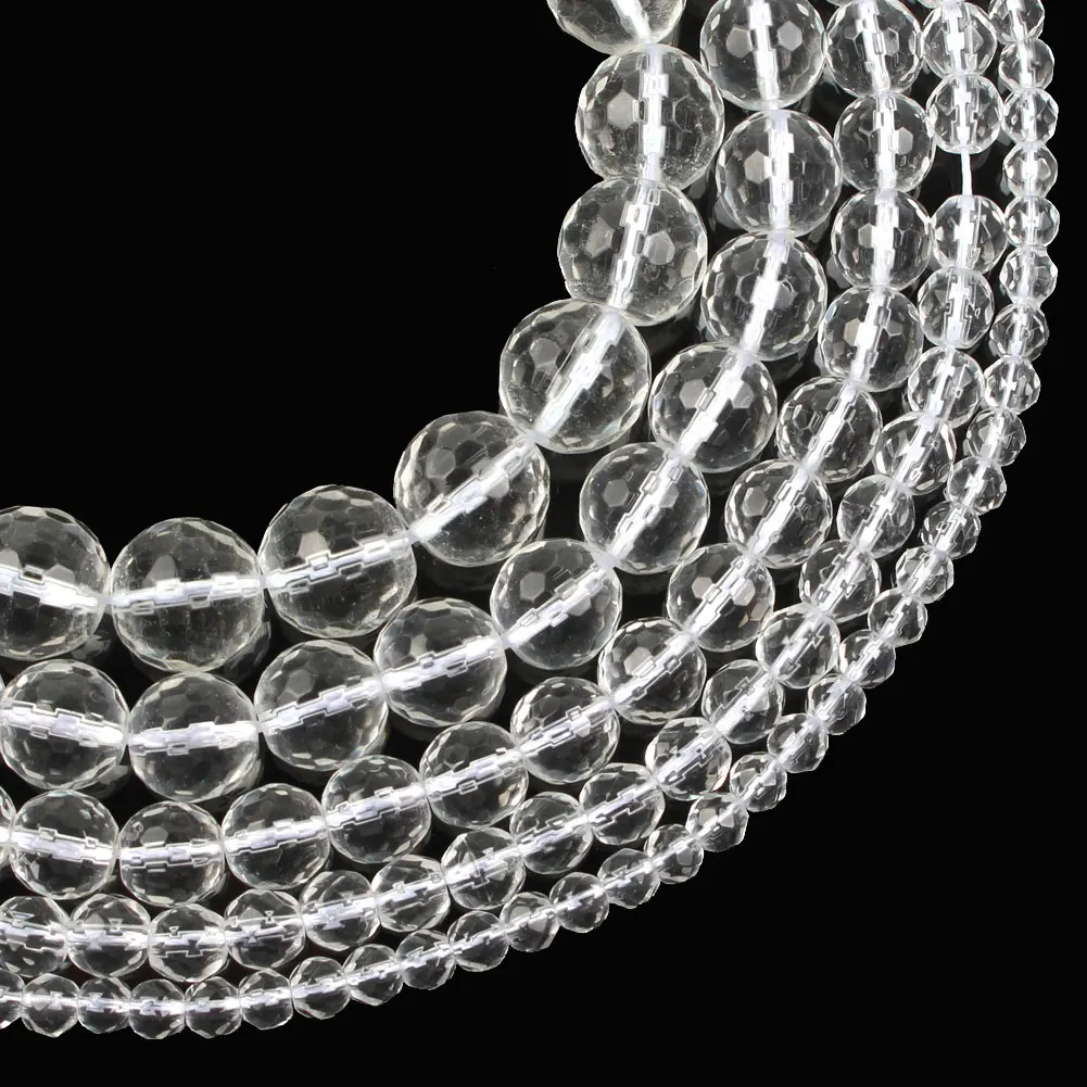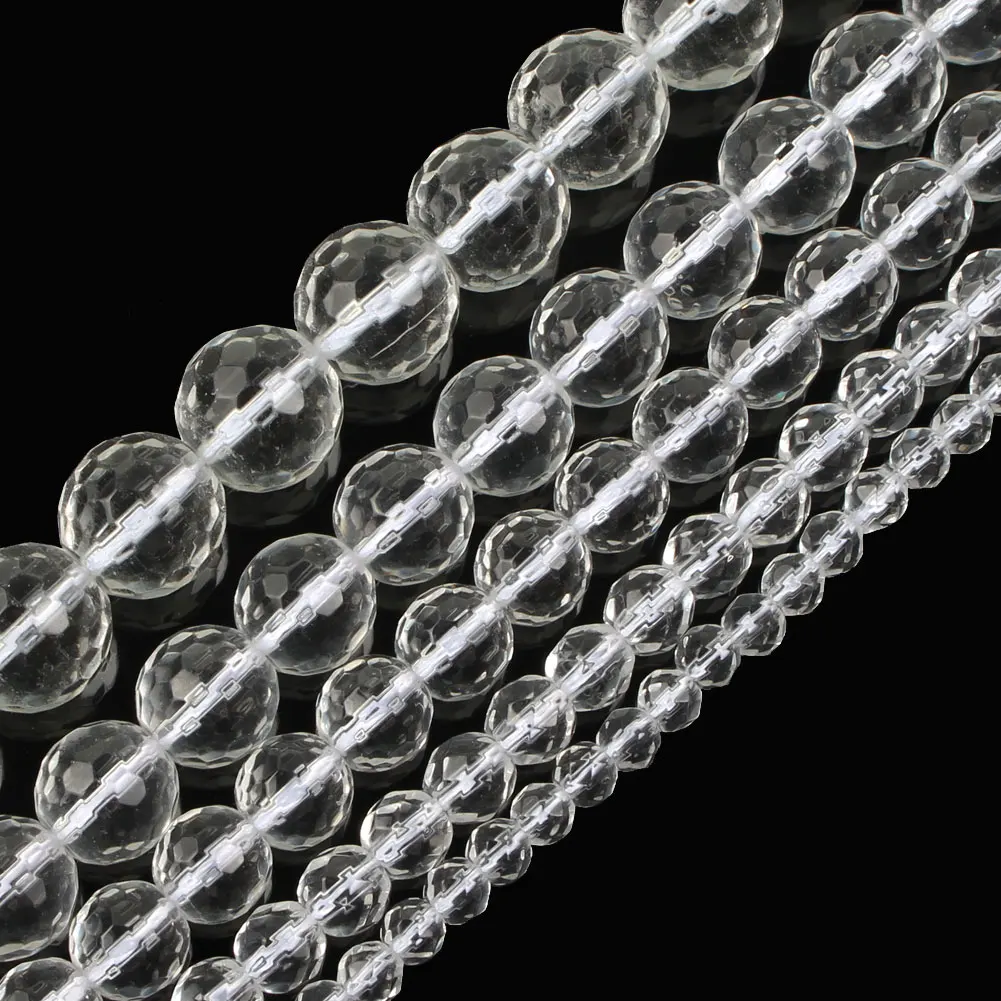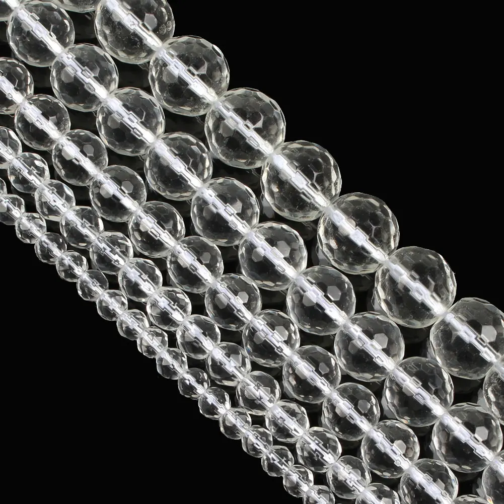 Бусины из натурального камня с вырезанной поверхностью, белые прозрачные бусины россыпью из камня для изготовления ювелирных изделий, рукоделия, браслетов, нитка 4-12 мм
