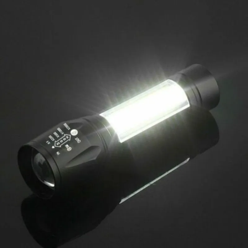 Ультра яркий светодиодный фонарик T6 COB светодиодный Многофункциональный USB Перезаряжаемый 3 режима фонарь для кемпинга масштабируемый фонарьОсобенности:Экологичные COB лампы, длительный срок службы и высокая яркость с энергоэффективностью. Поставляется с высококачественным шнурком на нижней части для удобного подвешивания и переноски. 4 режима освещения для свободного переключения по желанию с простым нажатием кнопки. Встроенный мини-аккумулятор с usb-кабелем для непрерывного освещения. 2-в-1 мини вспышка светильник & светодиодный рабочий светильник с высокой яркостью, подходит для Велосипеды, пешего туризма, кемпинга и других видов активного отдыха.Характеристики:Материал: алюминиевый сплавАккумулятор: встроенный аккумуляторТип: мощность COBПитание: зарядка через USBДлина: 10 см держатель лампыДиаметр: 4,2 смДиаметр задней крышки: 2 смПосылка включает в себя:1 * COB рабочий светильник-вспышка 1 * USB кабель