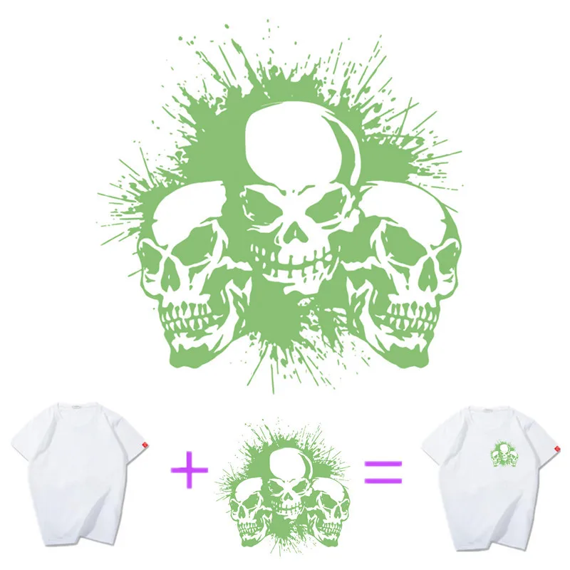 Светящиеся нашивки с черепами, аксессуары для одежды, Термотрансферная наклейка на одежду бумага, железо дюйма, флуоресцентная нашивка