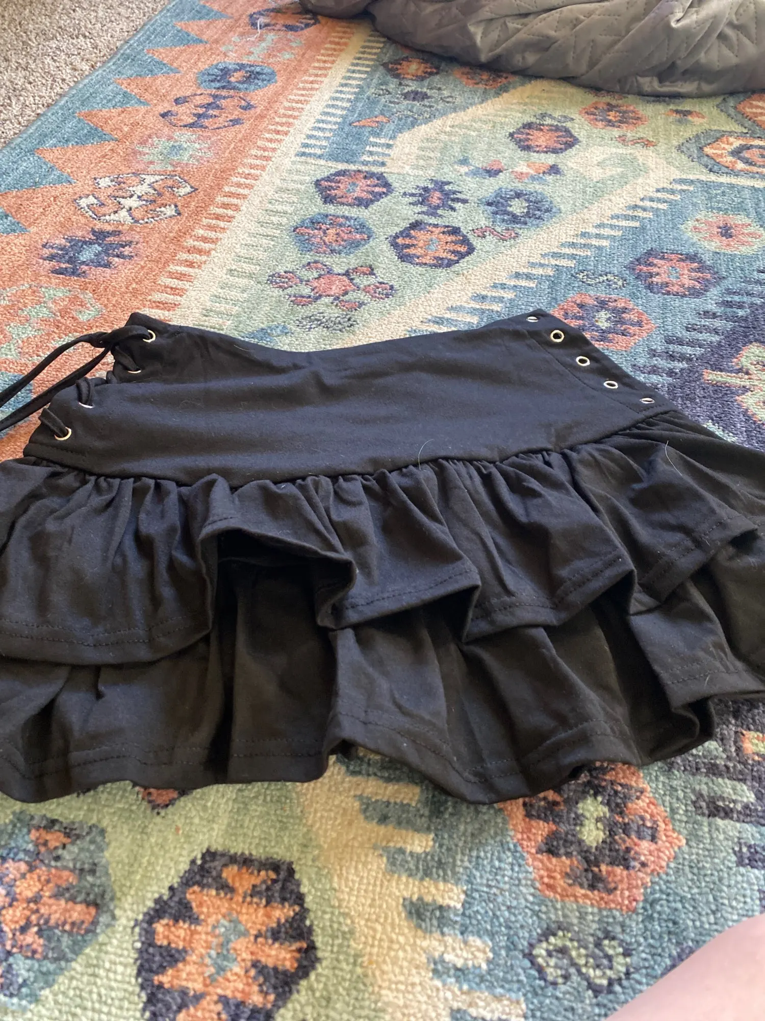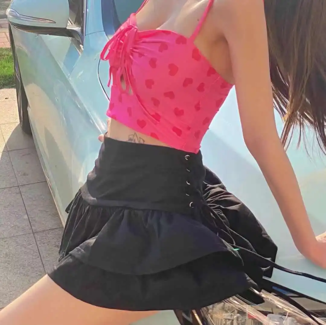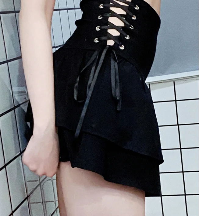 Мини-Юбка со шнуровкой по бокам, черная пикантная юбка y2k, Сказочная готическая одежда в стиле Харадзюку, короткая облегающая юбка с оборками, в стиле Харадзюку