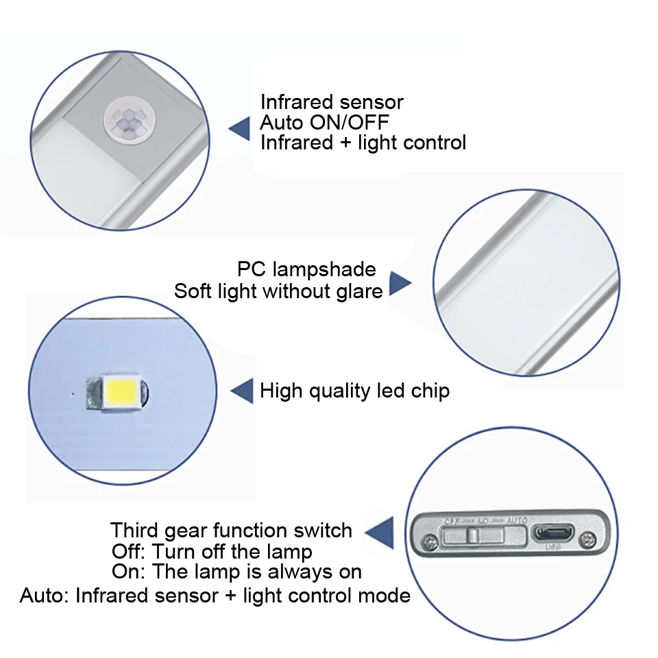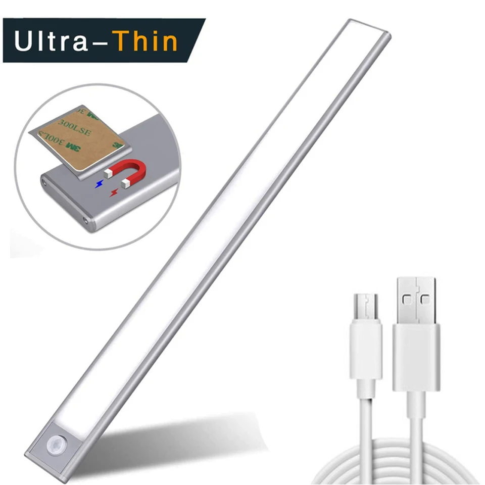 Ультратонкий Светодиодный светильник для шкафа 1223, 540 см, Ночной светильник с пассивным ИК датчиком движения, лампа с USB-зарядкой для кухни, гардероба, чулана