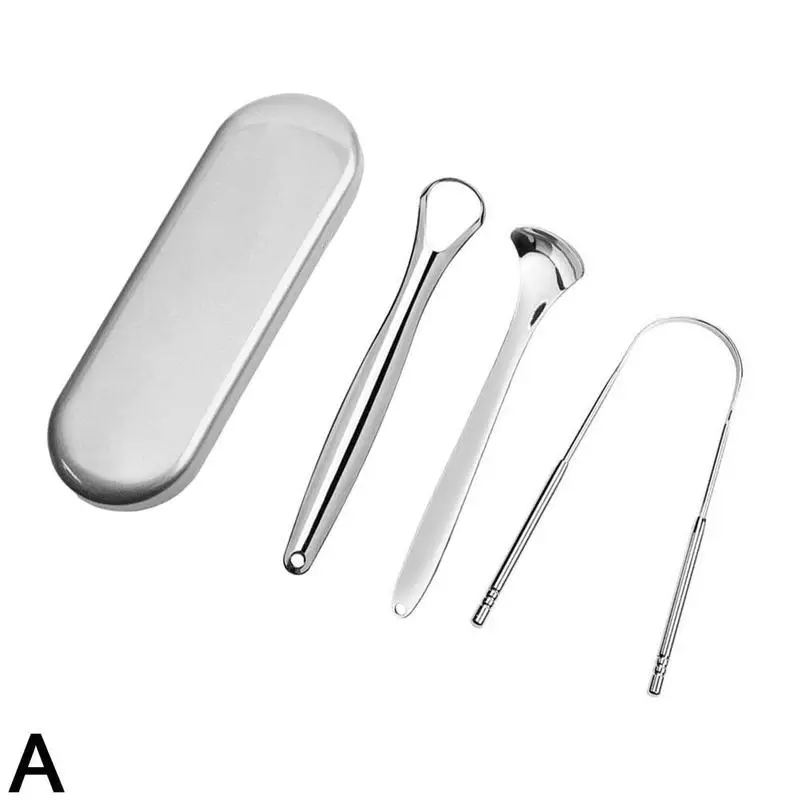 Скребок для языка 3 шт.компл. с удобным чехлом для путешествий, набор зубной щетки для плохого дыхания, металл для взрослых, устранение профессиональных T X7P8
