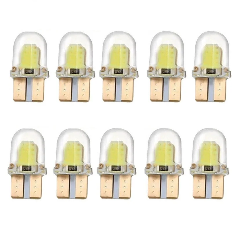 10 шт. Белый светодиодный ОД T10 W5W COB Canbus силиконовые автомоб...