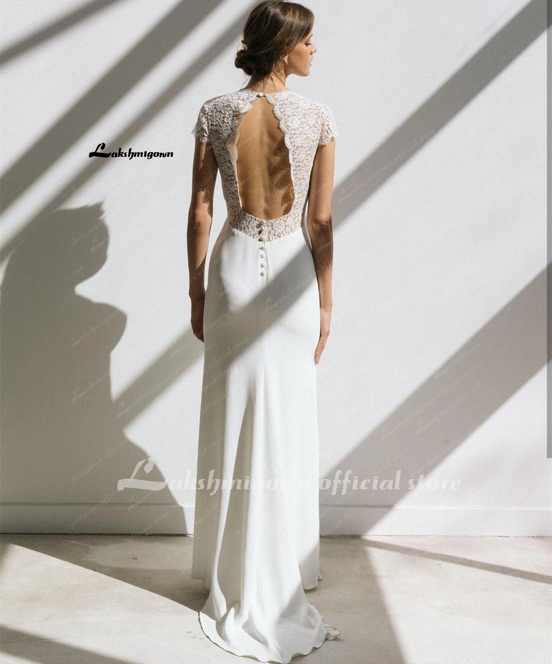 Романтическое свадебное платье в стиле бохо, кружевное платье с коротким рукавом и открытой спиной, очаровательное недорогое женское платье в стиле кэжуал