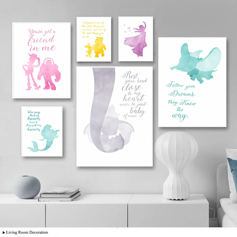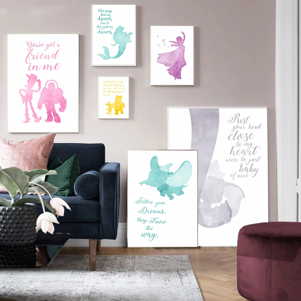 Скандинавский акварельный мультфильм Dumbo Русалочка нос девушка холст картина цветок плакат Настенные фотографии детская комната украшение дома без рамки