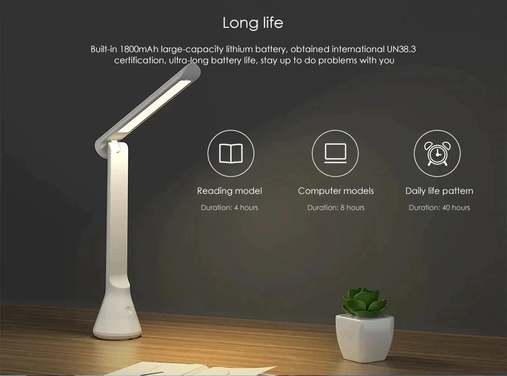 Yeelight светодиодный настольная лампа USB складное зарядное устройство, маленькая настольная лампа для обучения Портативный Регулируемая Защита 40 часов Срок службы батареи