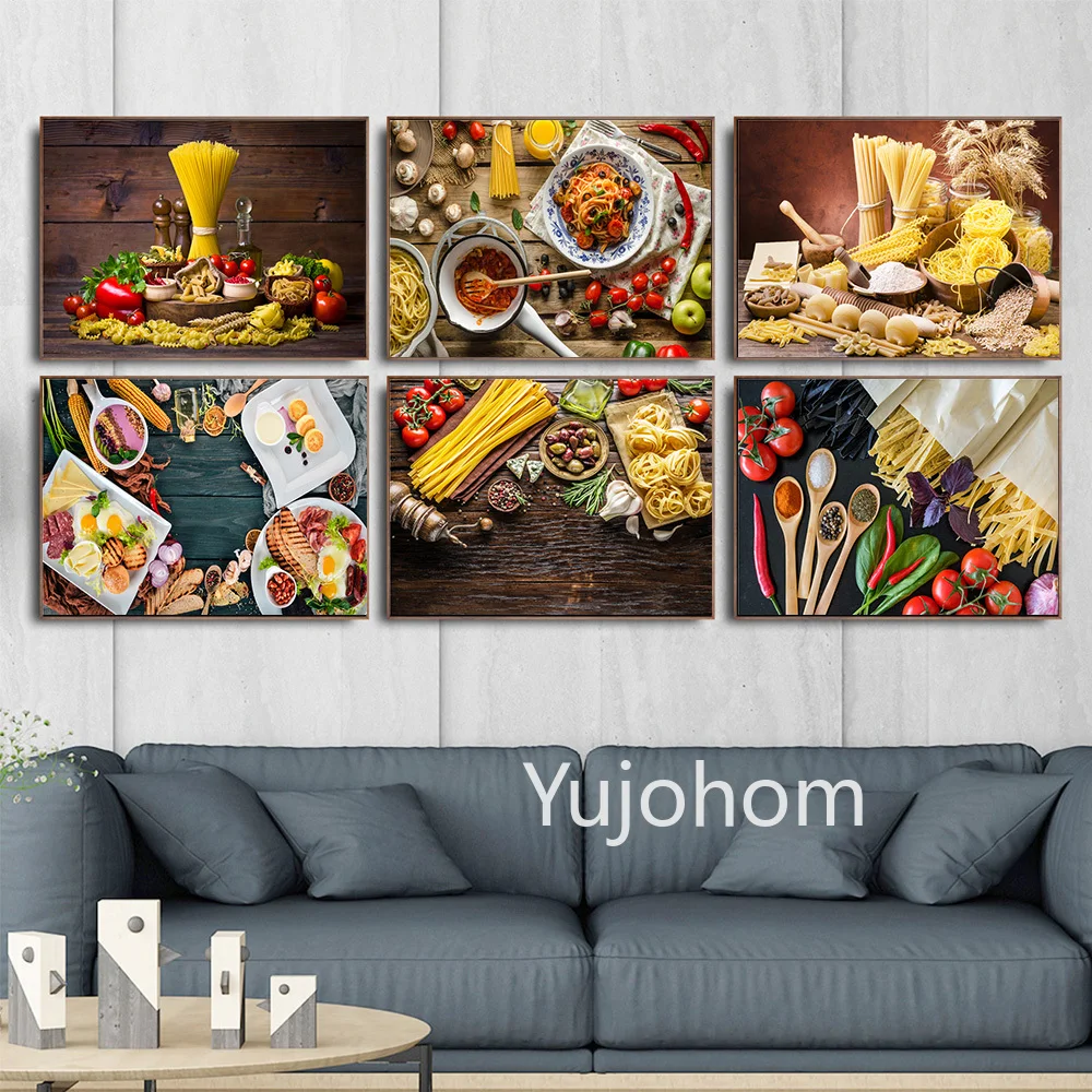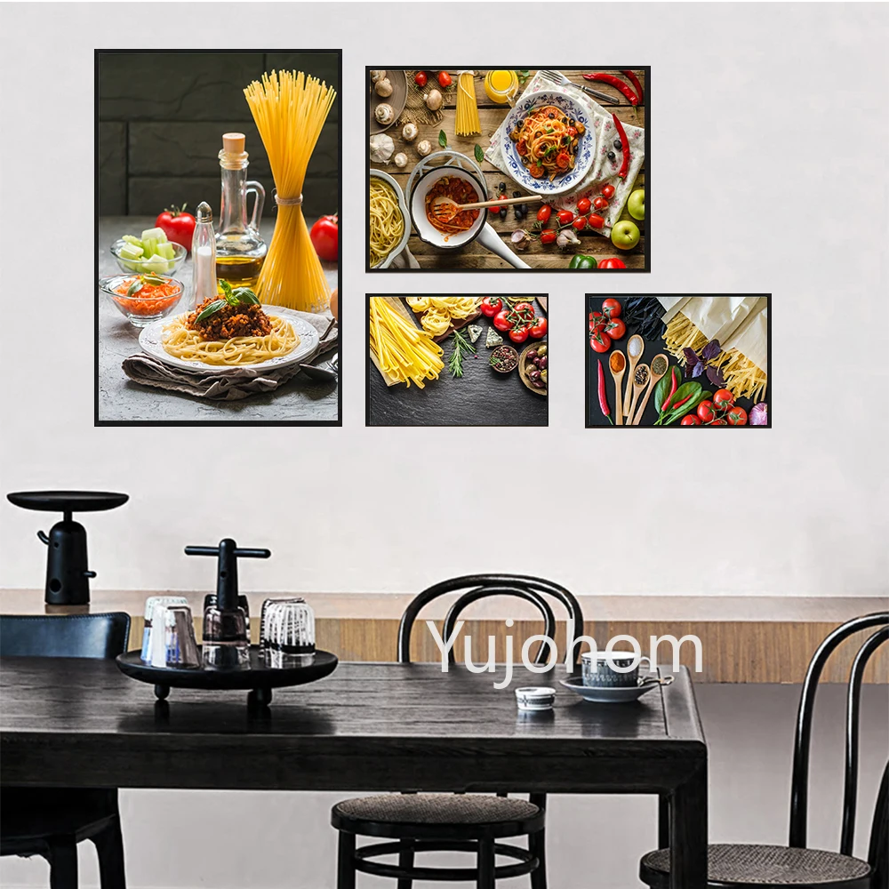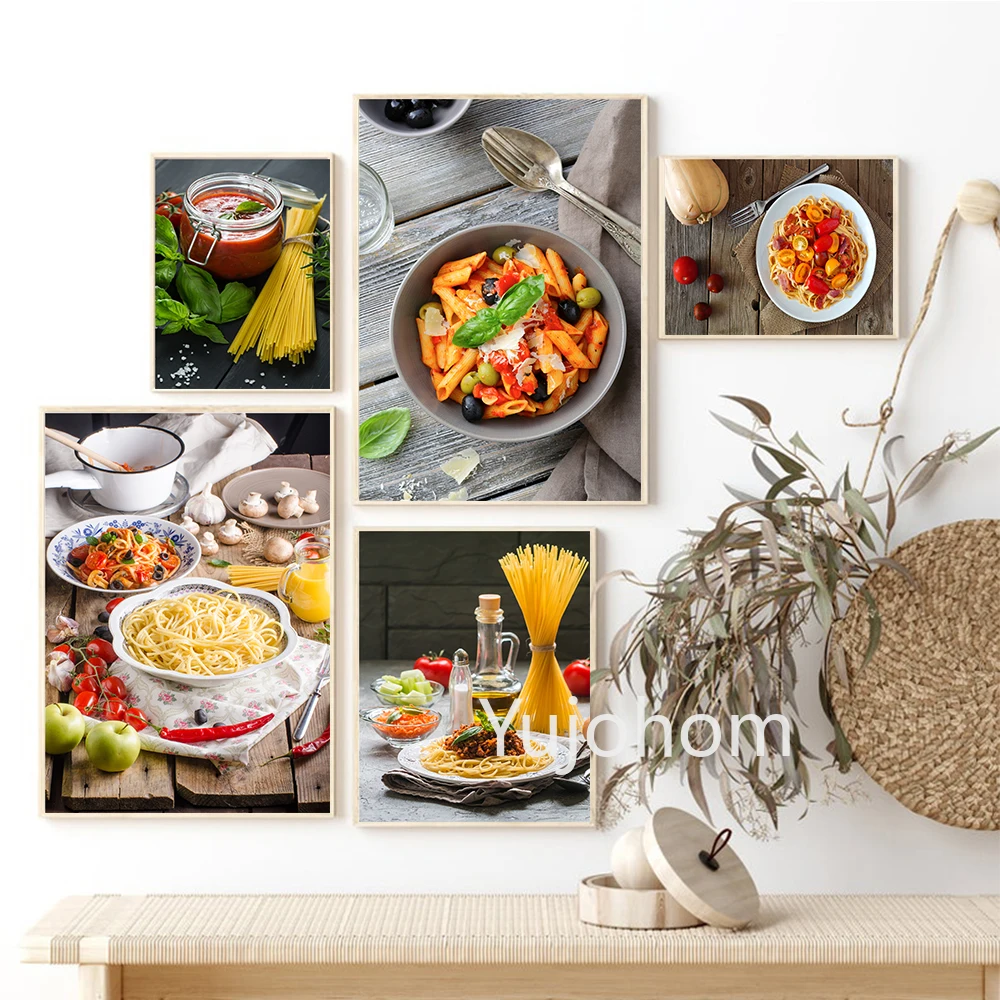 Итальянская Паста томатные оливки чеснок Ресторан холст картины плакаты и принты настенные художественные Kitcken столовая домашний декор фотографии