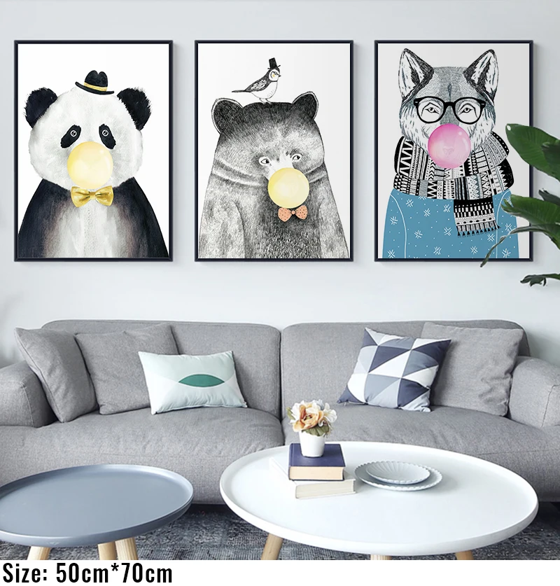 Черно-белый животный постер панда Лев лиса Альпака Медведь холст ка...