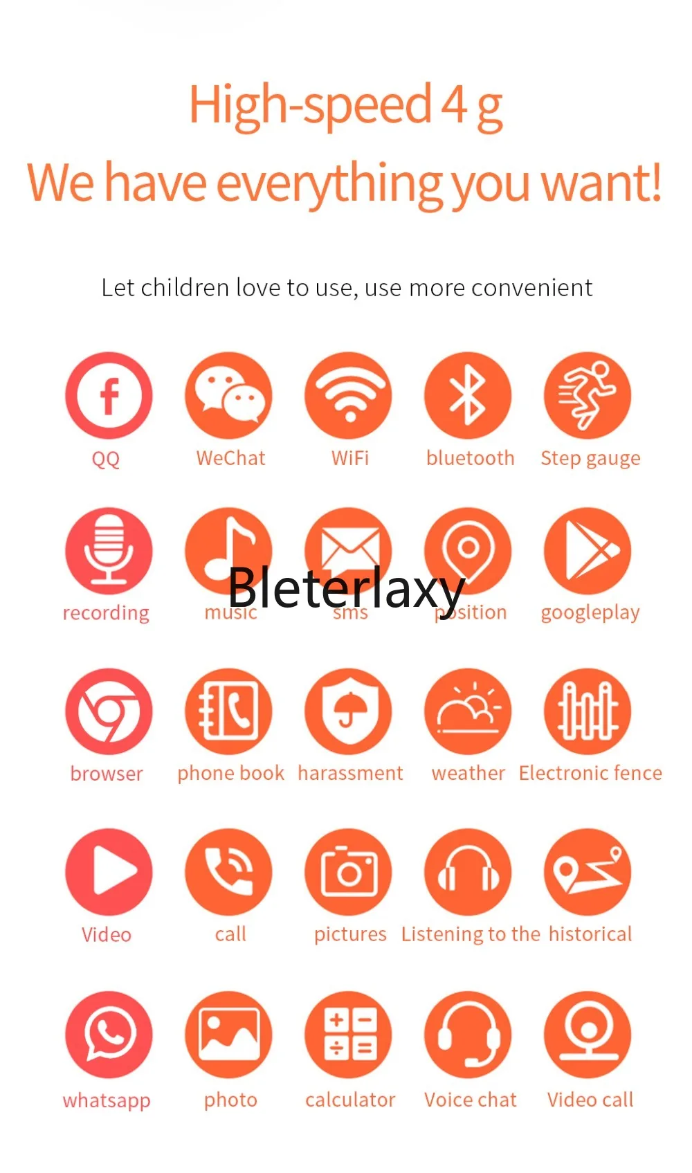 Сетевая версия 4G: GPS + WIFI + LBS + позиционирование GPS, более точное местоположение; Сетевая версия 4G: Сеть 4G, видеовызовы, голосовые вызовы, удаленный монитор, доступ в Интернет по Wi-Fi, данные LTE GPRS. Соединение более быстрое и стабильное; Функция вызова: GSM, TD-LTE-VOLTE видеовызовов (обе стороны должны открыть эту функцию, и в сети появился значок VOLTE); Поддерживает WeChat с 2,0 миллионами камер, поддерживает видеозвонки. Поднимите водонепроницаемый дизайн, вы можете носить его, когда моете руки или разместите на морской стороне. Цветной сенсорный экран HD 1,54 дюйма, полноразмерный IPS-дисплей, взрывозащищенный, устойчивый к падениям, устойчивый к царапинам, водонепроницаемый, пыленепроницаемый, разрешение 320*320; Часы поддерживают мониторинг состояния здоровья в качестве шагомера, отслеживания истории, мониторинга сна в качестве приложения для обучения. Пусть дети будут иметь безопасное и забавное детство. Пищевой силиконовый ремешок, антистатический, пыленепроницаемый, защищенный от пота. Примеры математических игр, тренируйте способность вашего ребенка к обучению Часы с сетевой версией 4G поддерживают доступ Wi-Fi, подключение по Bluetooth. Эти сетевые часы 4GПоддерживает языки из стран, включая немецкий, английский, испанский, французский, итальянский, тайский, польский, португальский, турецкий, русский, китайский и т. Д.Если вам нужно заказать Часы на этих языках, пожалуйста, свяжитесь с нами вовремя, Мы произведем и отправим их в соответствии с вашими требованиями. Сетевой ремешок, поддерживаемый этими часами (часы 2g поддерживают только сетевой ремешок 2G, часы 4g поддерживают сетевой ремешок 2G,3G и 4g): 2G:GSM:850/900/1800/1900 МГц 3G:WCDMA :B1(2100 МГц),B8(900 МГц) 4G:TDD-LTE :B38 B39 B40 B41 FDD-LTE:B1(2100 МГц)/B3(1800 МГц)/B7(2600 МГц)/B8(900 МГц)