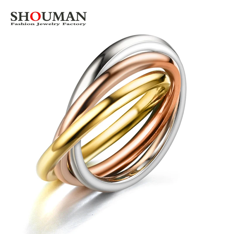 SHOUMAN классический 3 Круги кольца Ювелирные наборы для женщин из нержавеющей стали обручальное женский перстень ювелирное изделие