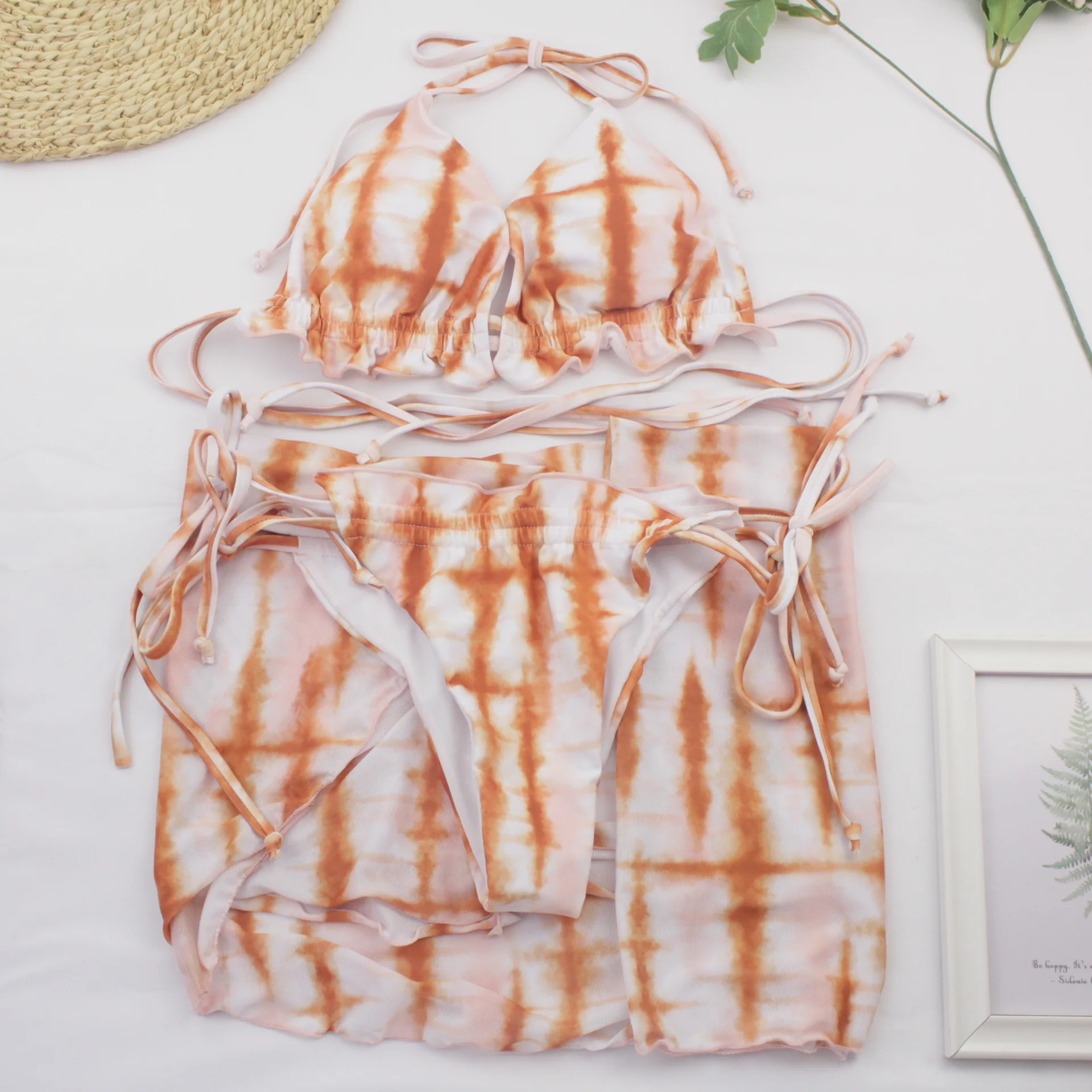 Женский комплект бикини с принтом, купальник из трех предметов, бюстгальтер с наполнителем, новый брендовый купальник, пляжная одежда, бикини, бикини pluz, размер, танга для женщин #35