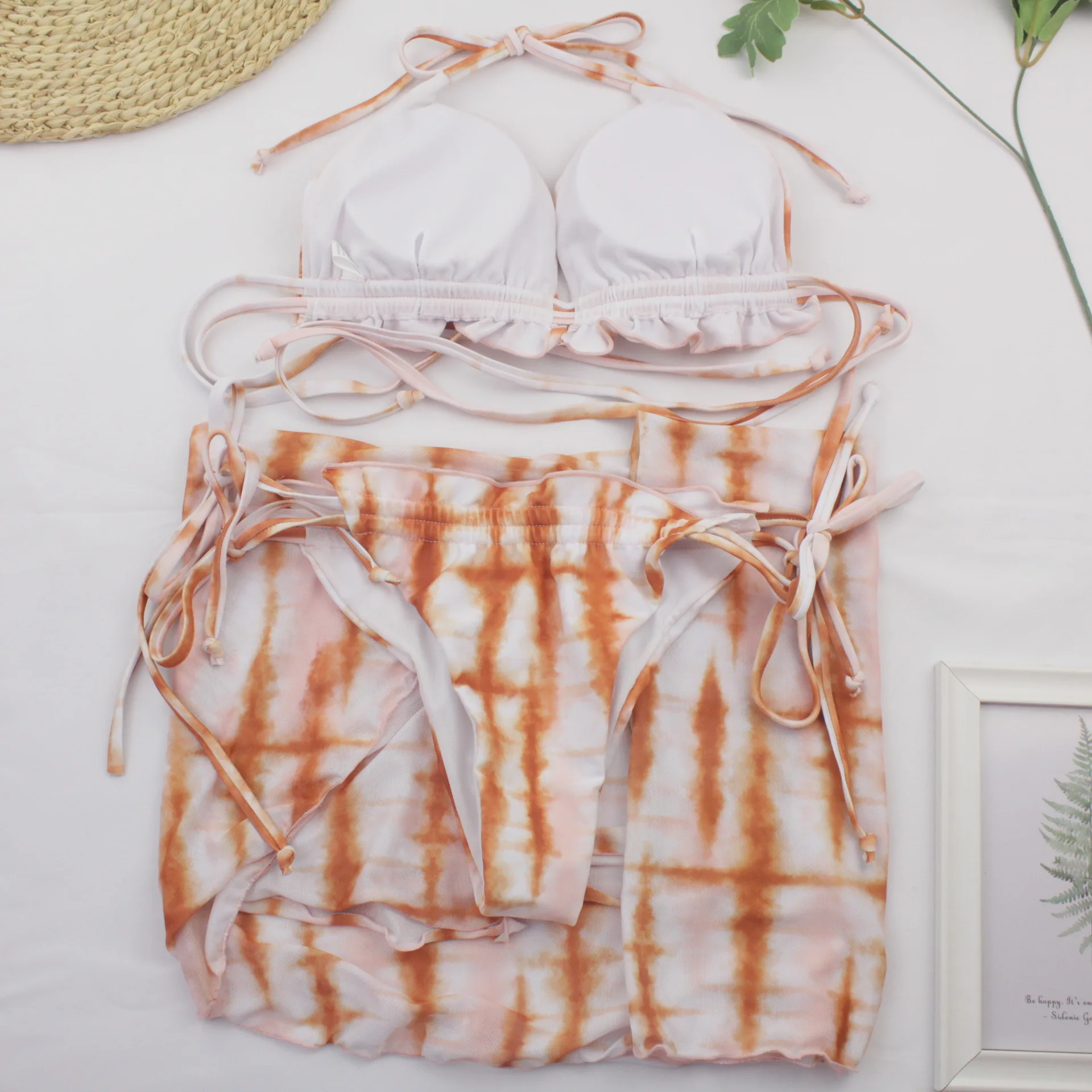 Купальный костюм из трех предметов с короткой юбкой и эффектом пуш-ап