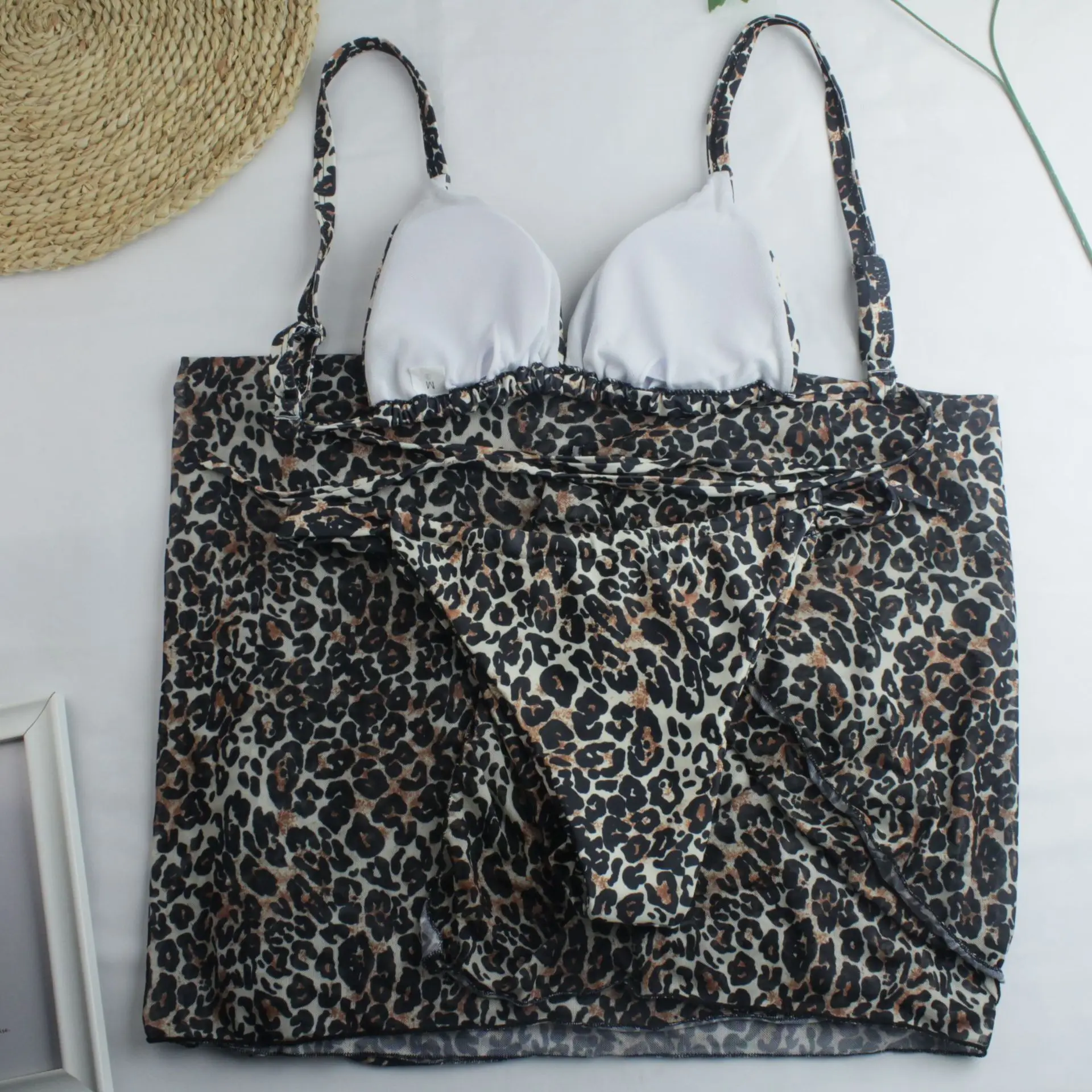 2021 женский купальник из трех частей, сетчатый купальник с леопард...