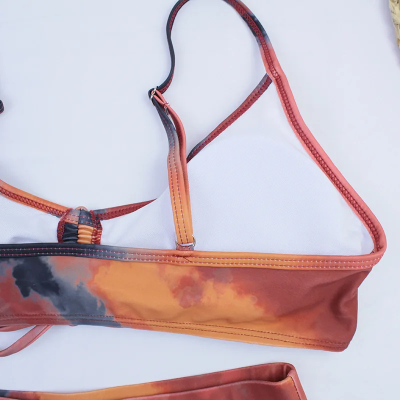 Пикантные 3 предмета купальник Для женщин тай-дай пуш-ап бикини бра...