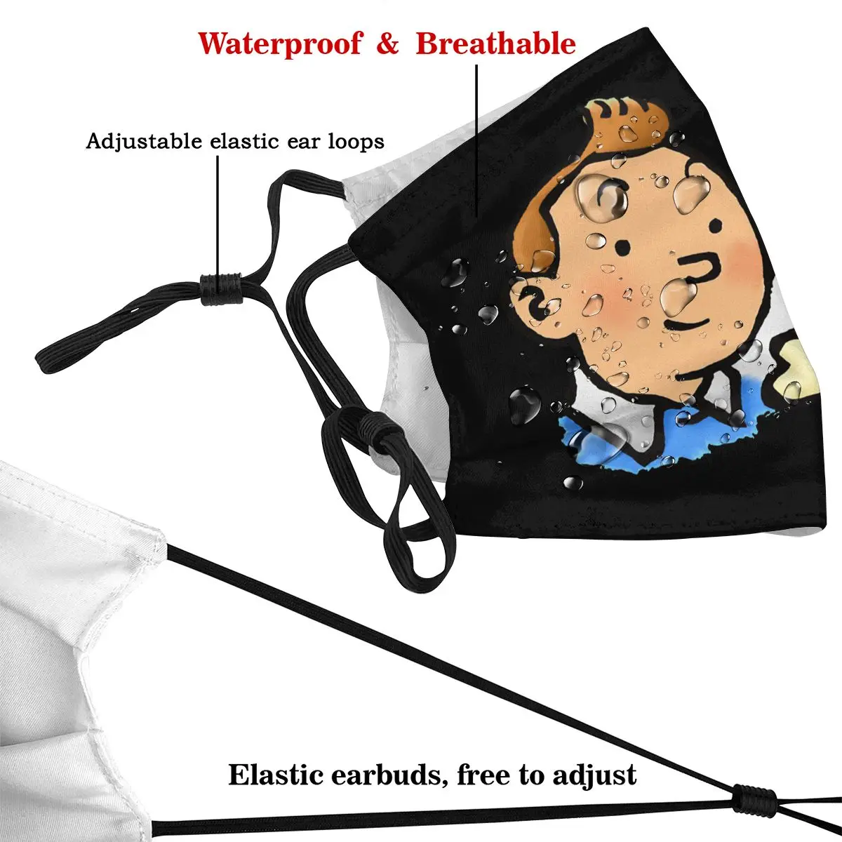 Маска для лица Приключения Тинтина, многоразовая, моющаяся, с фильтрами