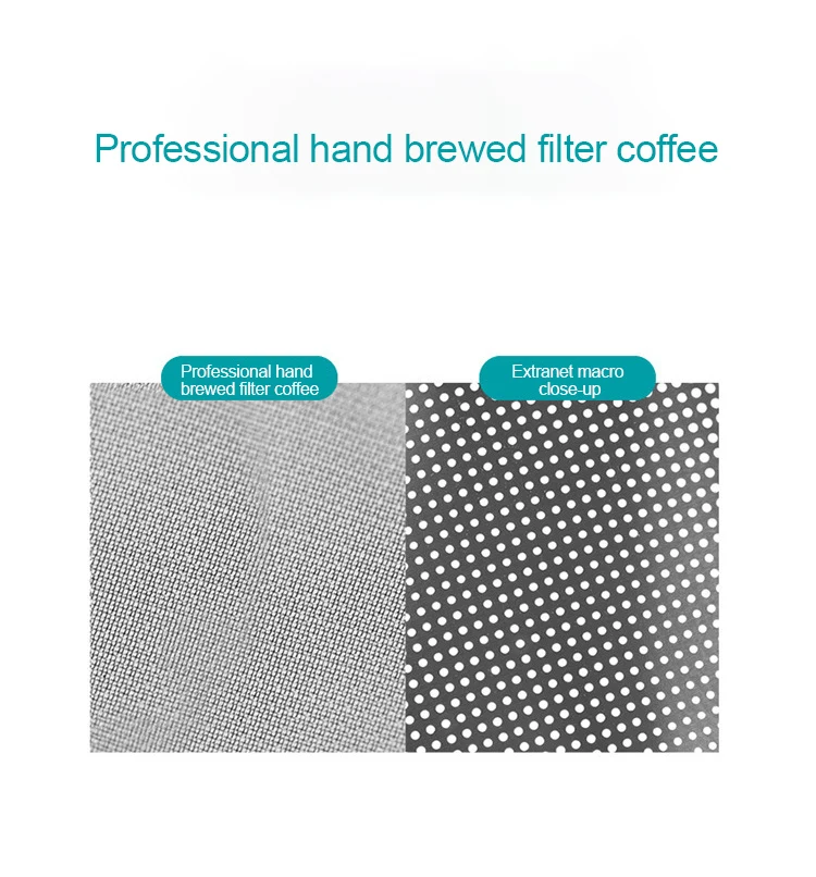 5. Внутренний слой сплетен с сверхтонкими металлическими проводами высокой плотности для изоляции кофейного порошка. Внешний слой утолщенной пластины из нержавеющей стали является лазерным просверленным и имеет дополнительный защитный слой.
