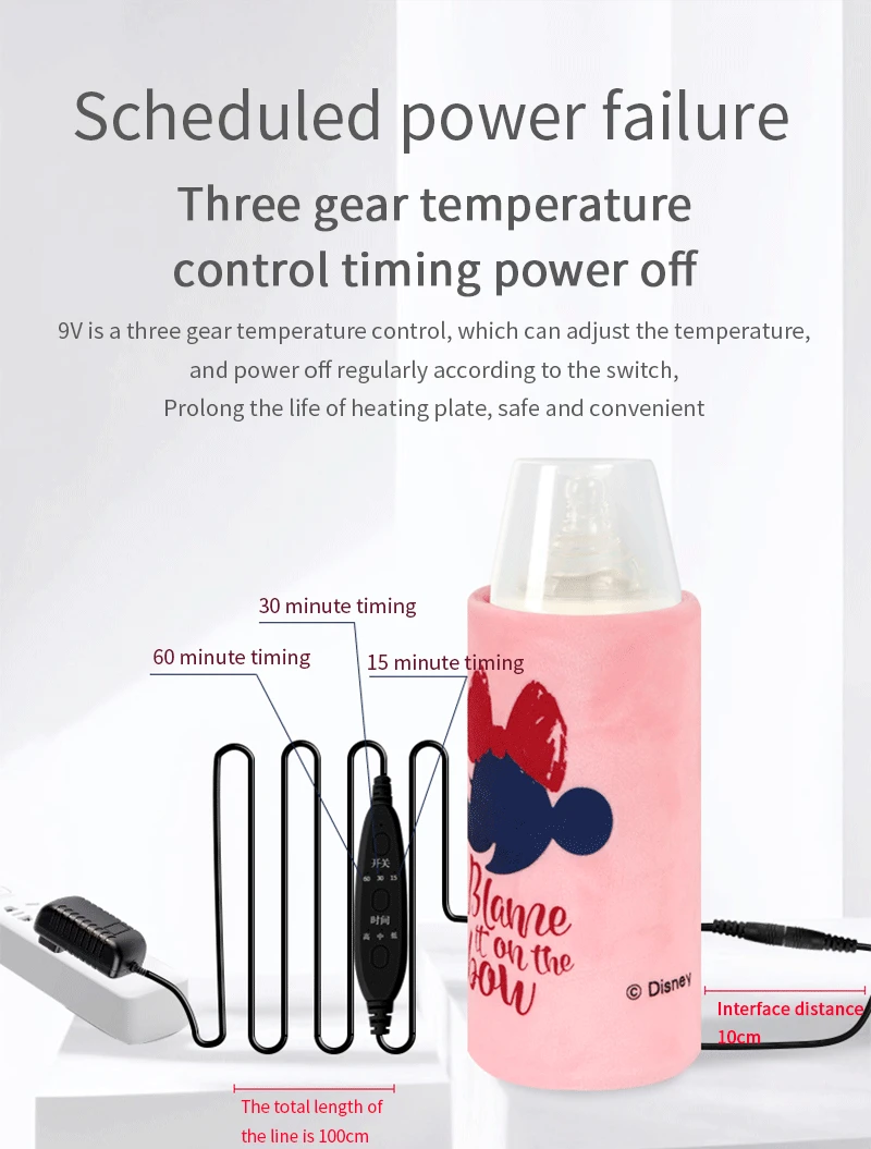 Детские товары Disney, Микки и Минни, изоляционный рукав для бутылки с молоком, с циркулирующим подогревом, портативная, с USB-зарядкой, термостойкая, сохраняющая тепло
