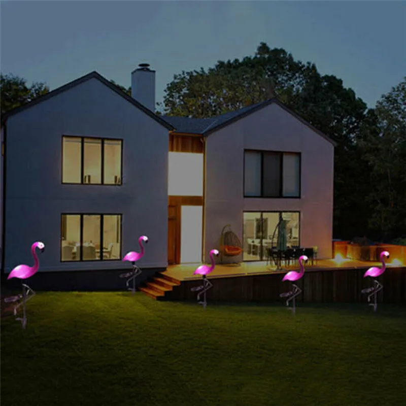 Садовый светильник на солнечной батарее, красивое розовое украшение для лужайки с фламинго, садовый Ландшафтный фонарь, уличное освещение