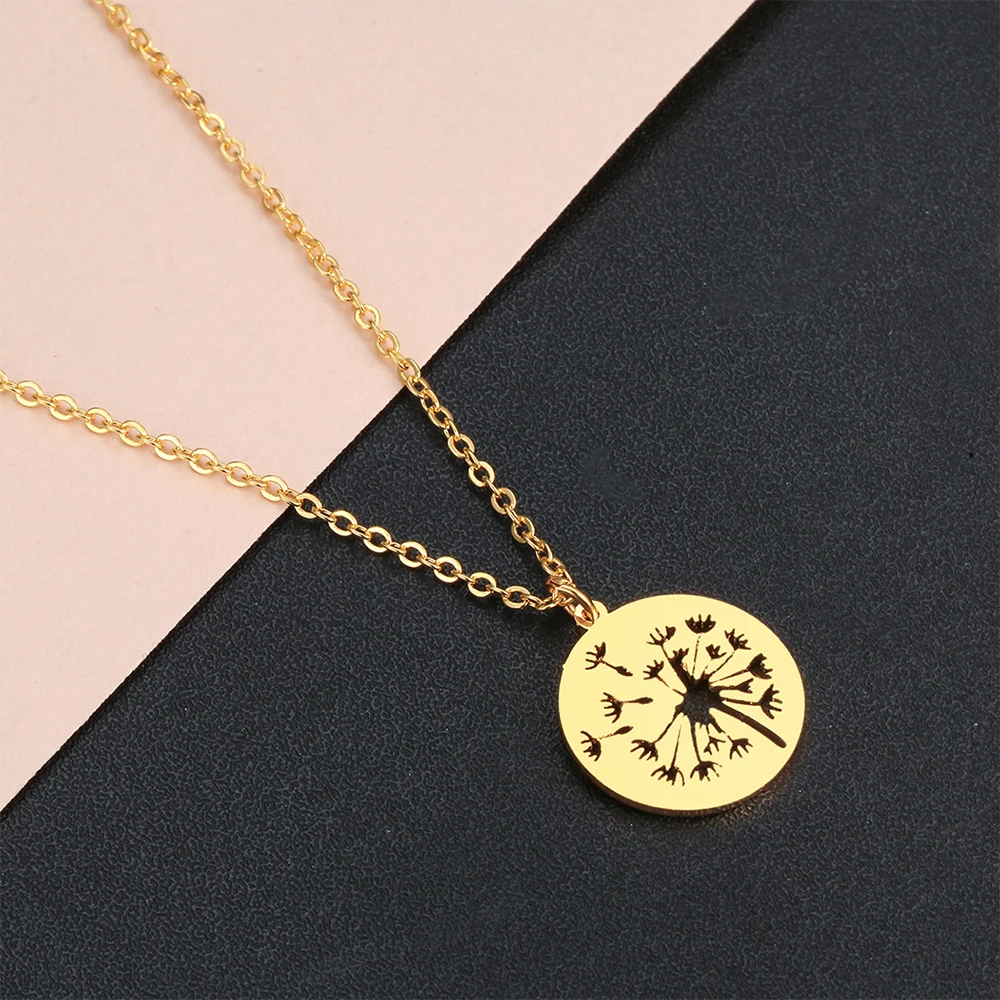 Женское ожерелье с одуванчиком, геометрическое круглое ожерелье с подвеской, ювелирное изделие из нержавеющей стали, длиной 45 см (17 6/8 дюйма), цельнокроеное изделие