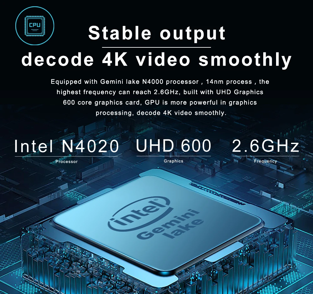 Марка процессора/модельЧетырехъядерный процессор Intel Celeron N4020