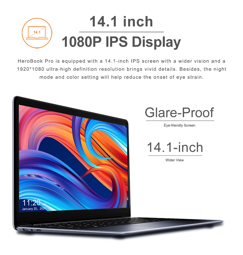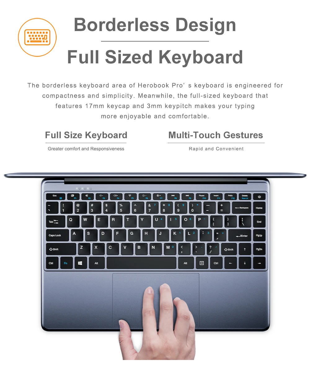 CHUWI HeroBook Pro 14,1 дюймовый ноутбук Intel Gemini lake N4000 двухъядерный 8 Гб Оперативная память 256GB SSD Windows 10 Мини компьютер полный раскладка клавиатуры