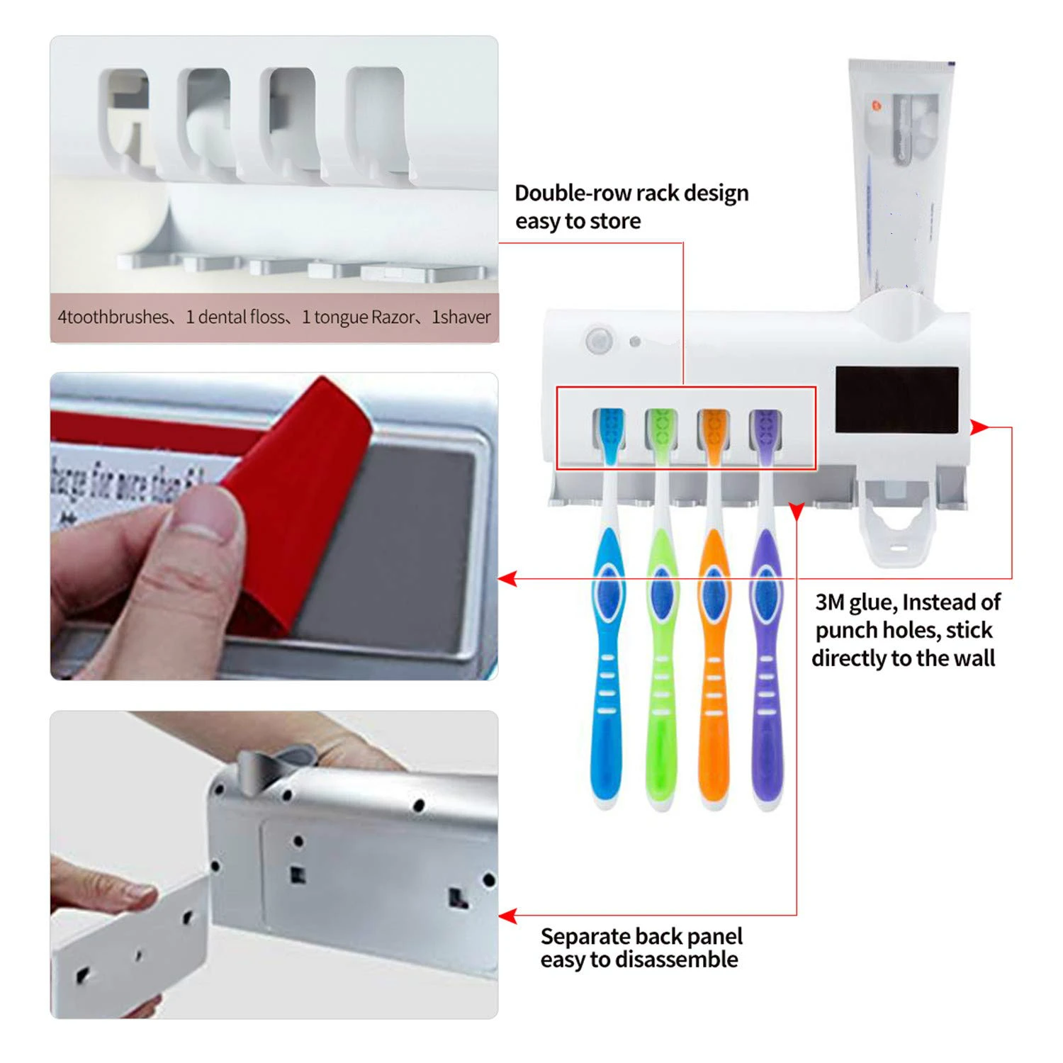 УФ-держатель зубных щеток на солнечной энергии, двухслойный стерилизатор, Автоматический Диспенсер зубной пасты, настенные аксессуары для ванной комнаты